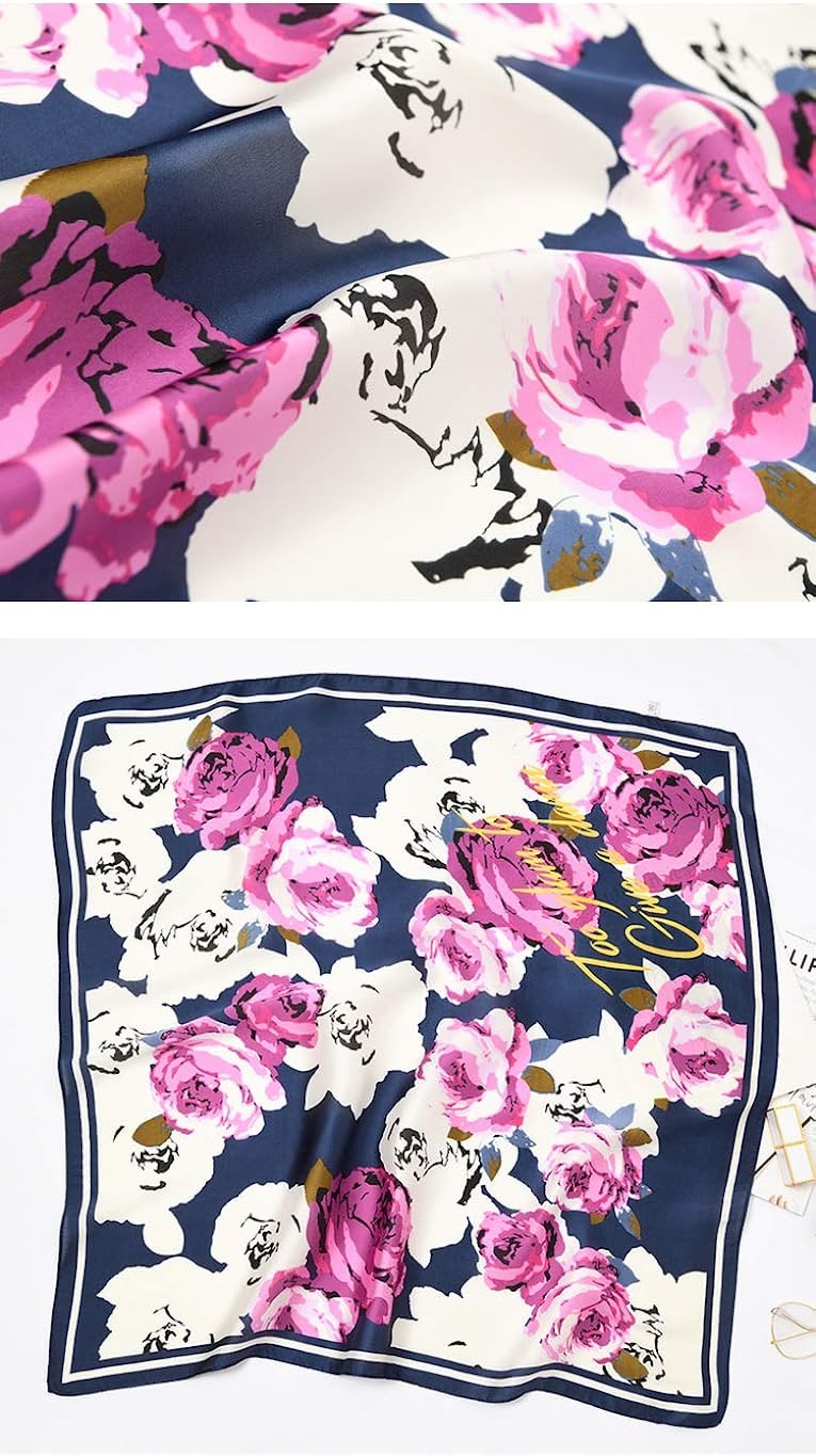 100% Polyester, lightweight material Size: 27.5" x 27.5" / 70cm x 70cm Feel elegant smooth and soft when you touch this mulberry satin silk scarf it is also gentle and breathable, the elastic is excellent. Perfect for all seasons. MULTI WAY TO WEAR – Great fashion square bandana can be used as hair scarfs, neck scarfs, shawls, hair bands, veils, belts, ties, and so on. These elegant lightweight neckerchiefs also suitable for any uniform, like Stewardess, Hotel, and Bank attendant. WASHING NOTICE: IT would be better to wash by hand below 30 ℃ water,machine washing is not recommended and may damage the scarf, ironing on low heat and dry cleaning methods are accepted.