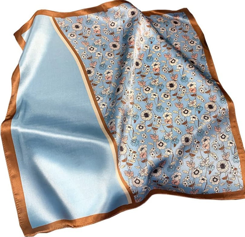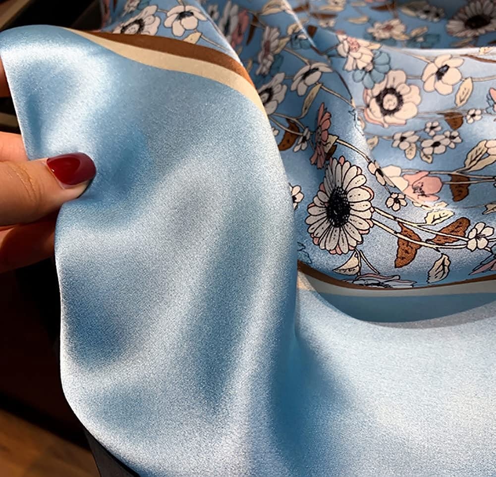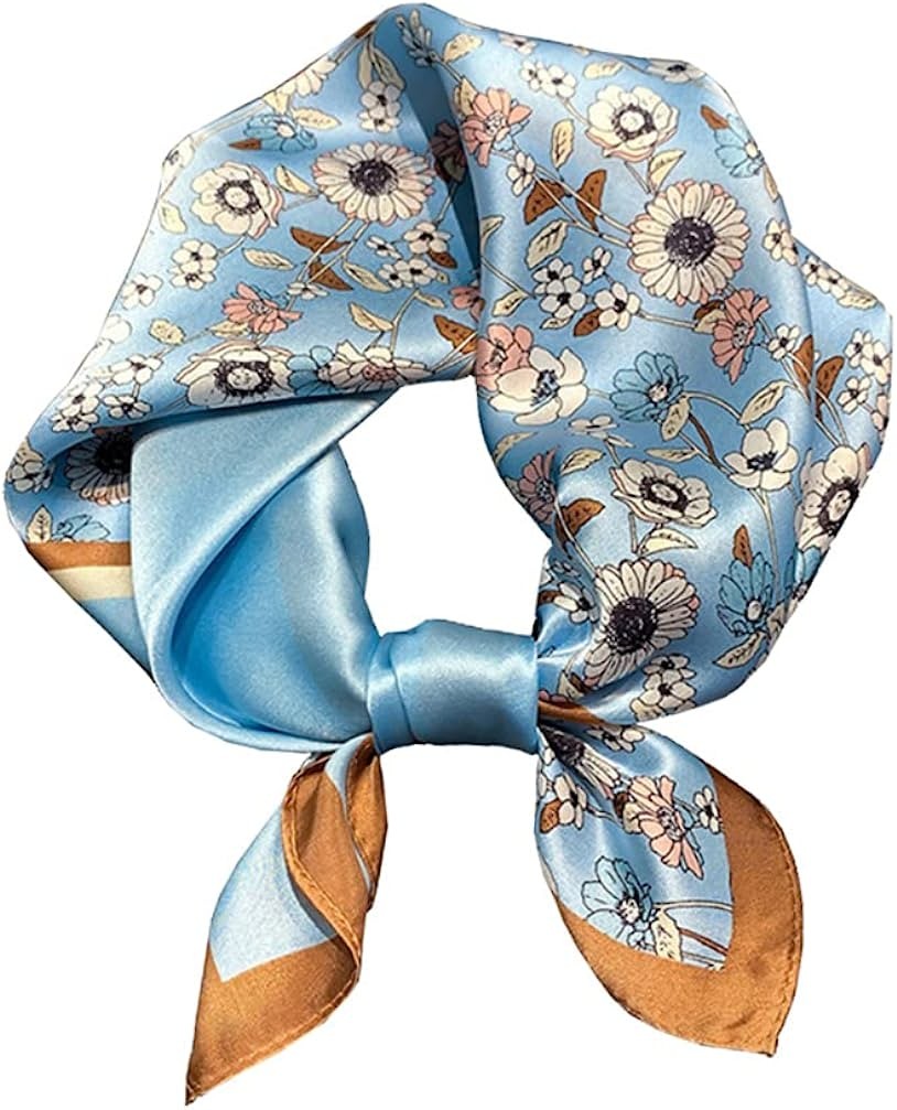 MATERIAL - 100% mulberry silk of high quality, close to skin and breathable, soft and smooth as satin, healthy and eco-friendly without pollution or peculiar smell. Made in Hangzhou - the silk city in China. SPECIFICATION- Weight: 0.035 lb (0.56 OZ); Size: (21"*21")(53x53cm). This scarf is extremely cozy and good for wearing all year round, providing you warmth in spring and autumn, also bringing you coolness in hot summer. DESIGN - Various ingenious designed and elaborately printed patterns available, colorful and gorgeous, delicate and beautiful- Fit for women in all ages. You will be the distinctive one in the crowd. VERSATILE -The scarf could be wrapped around your neck, waist, wrist, ankle, as well as your purse or handbag by different knotting and wearing ways. It is a great addition to compliment your total looks and outfit for any occasions.