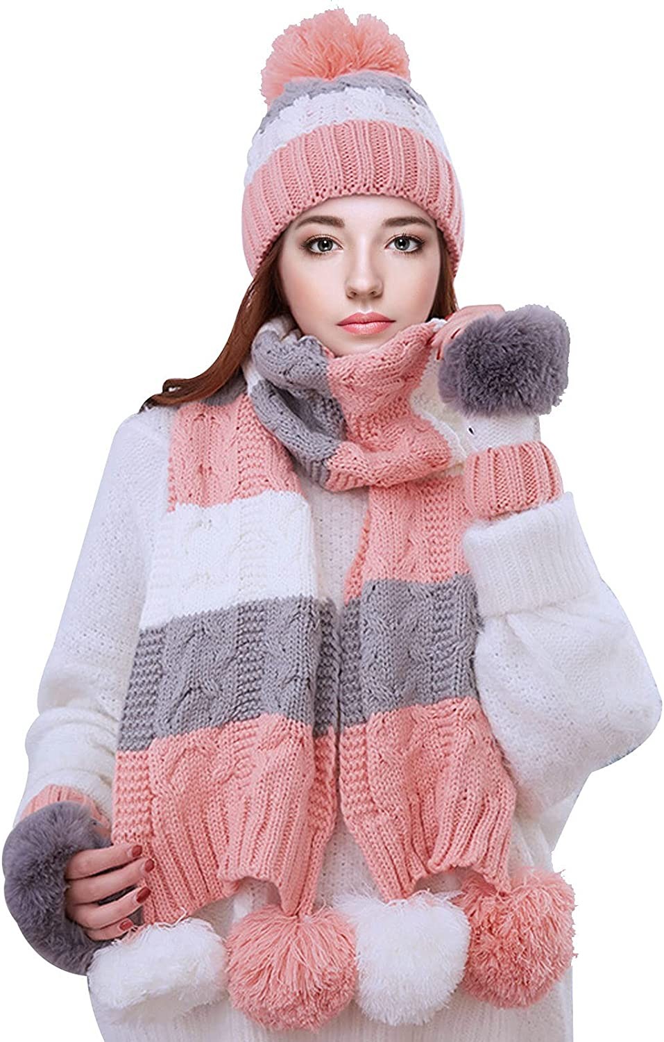 Stylish Leisure Winter Wear: The Perfect Combination Of Warm And Stylish, Super Warm Faux Fur , You Best Winter Hat. A Wonderful Knitted Hat Scarf Gloves Set For Wearing While Skiing, Snowboarding, Skating, Sledding, Snowshoeing, Camping, Hiking, Fishing, jogging, Cycling, Hunting or Any Outdoor Sports And Activities, Pair Off With Your Favorite Winter Outfit.