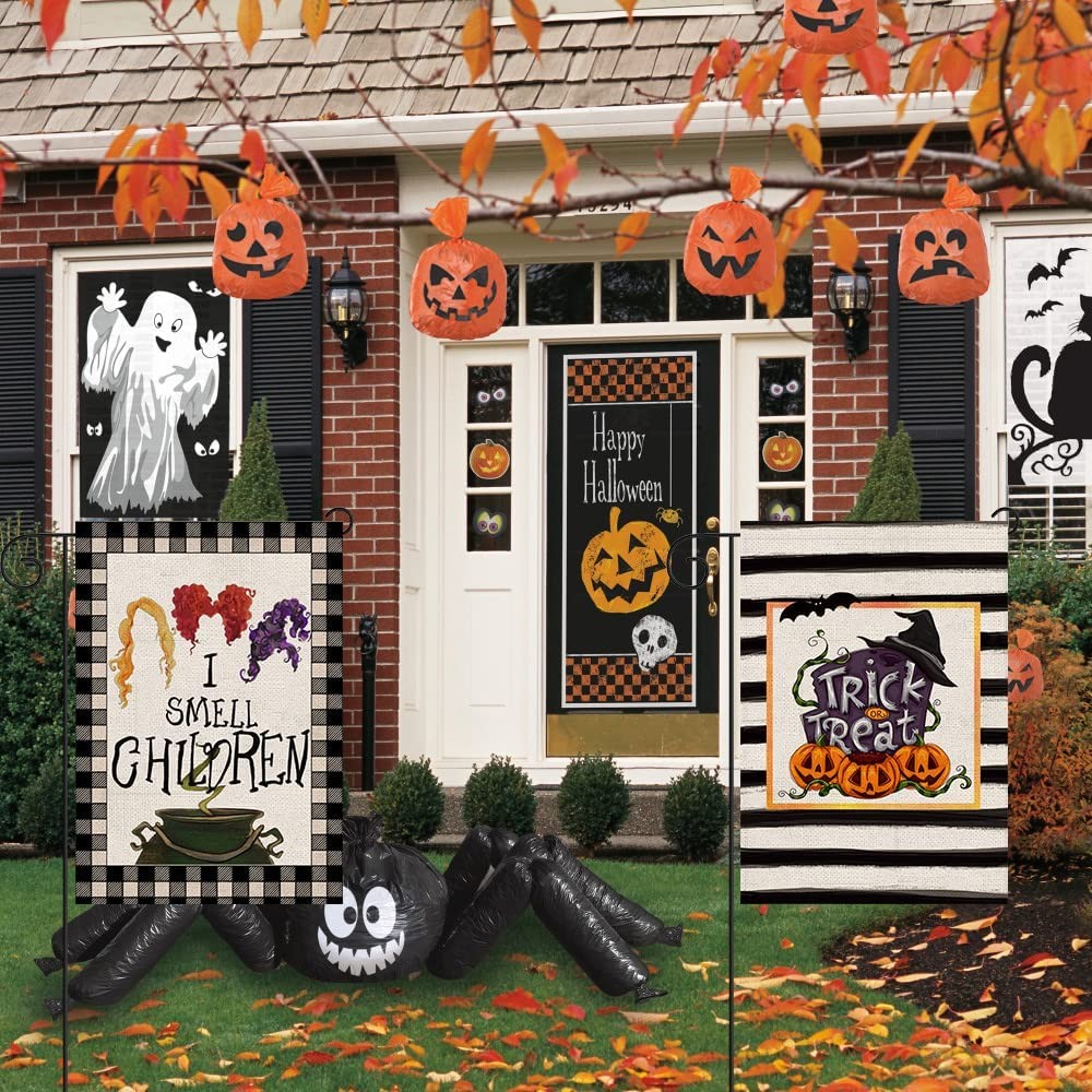 【PREMIUM QUALITY MATERIAL 】: Made of premium quality burlap looking machine washable Spun Polyester, which is weather resistant as well as UV / fade-resistant. 【DOUBLE SIDED PRINTING】: Printed on both sides with our excellent printing process, the image is vibrant and vivid on both sides, and text reads correctly from both sides. 【Halloween Decorative Flag】 our farmhouse decor garden flag is exquisitely designed, lively and beautifully patterned, let's make your garden and yard stand out with our beautiful halloween garden flag. 【Standardized Garden Flag Size】: the halloween garden flag measures 12.5 x 18 inches, just the right size for any space, and the halloween flag mounts easy to display and also allows to hang on the door, your windows with flag poles (not included). 【RISK FREE GUARANTEE】: In order to meet your complete satisfaction, we provide Risk Free 30-Day Money Back Guarantee.