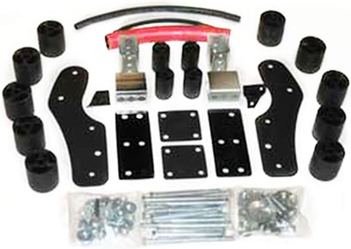 Performance Accessories 3-inch Body Lift Kit PN-5563 raises the vehicle for adding larger diameter tires, without altering the factory suspension system and OE ride characteristics. The kit includes high pressure fiberglass reinforced nylon lift blocks, 3/16 inch thick laser cut and powder coated front and rear bumper relocation brackets, a CNC machined and zinc plated steering extension, high strength hardware, and extension brackets. A set of urethane wheel-well extensions (2wd Gap-Guards PN-6343) or (4wd Gap-Guards PN-6339) are available separately, and are used to conceal any gaps between the body and frame. This system can be installed in 7-8 hours and comes complete with everything necessary for installation. Additional Information: Fiberglass reinforced nylon body blocks CNC machined & zinc plated steering extension Laser cut and powder coated front and rear bumper relocation brackets Laser cut and zinc plated fittings and brackets High strength hardware included Made in the U.S.A.