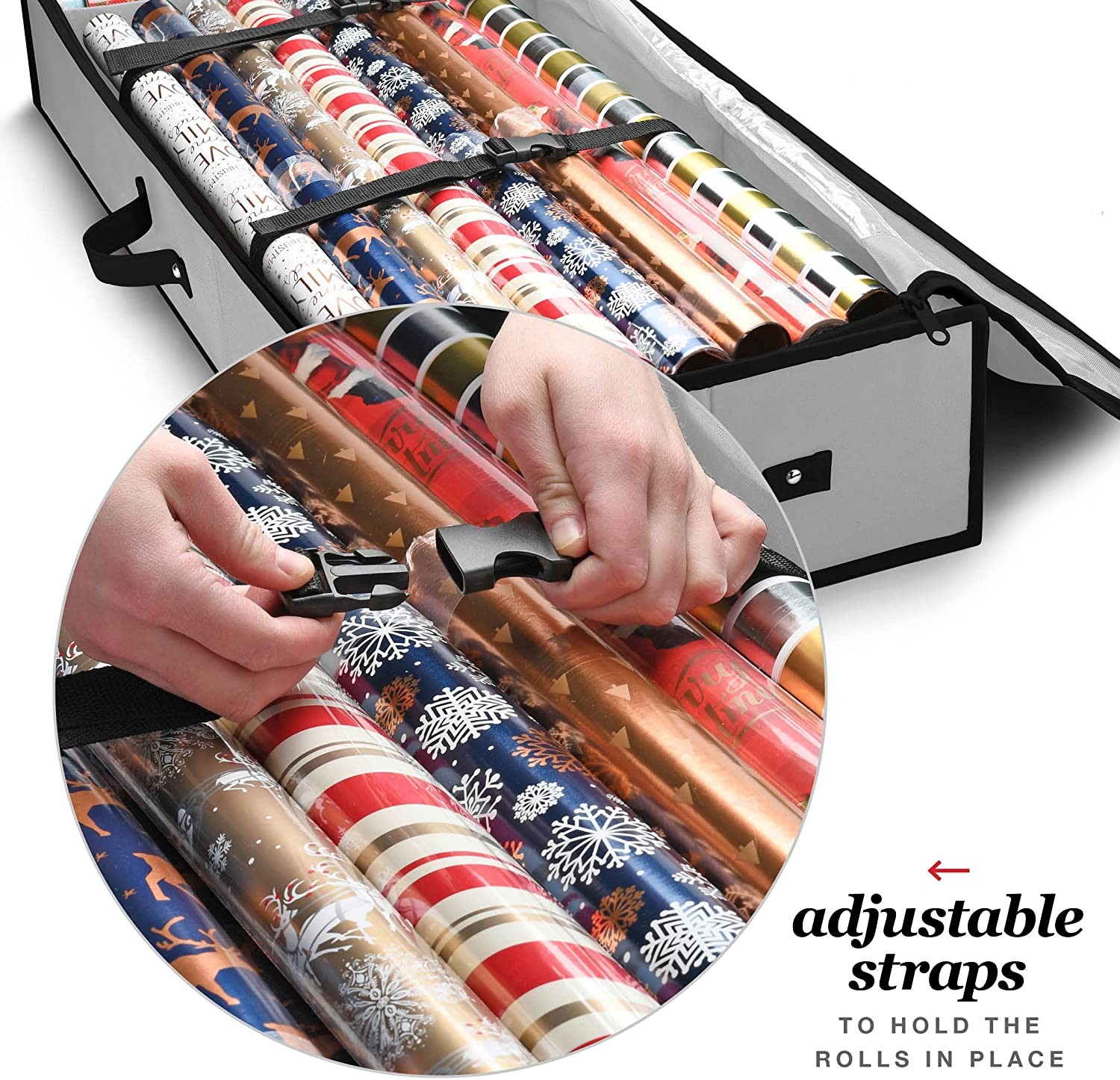 THE ULTIMATE GIFT WRAP STORAGE SOLUTION - Don't let your gift wrap collection get disorganized! The premium gift wrap paper storage organizer is the best way to store and organize all of your gift wrap rolls, Christmas decorations, and accessories in one place. the wrapping paper organizer has an extra pocket for storing scissors, tape, bows, ribbon, and other wrapping supplies. SPACE SAVING - Finally, a gift wrap organizer that fits under your bed or in your closet! No more wasted space on bulky boxes. The Premium Wrap Organizer is the perfect solution for storing all of your Christmas wrapping paper rolls and accessories in this gift wrap storage box. STURDY CONSTRUCTION - The Premium Wrap Organizer features durable construction, heavy duty fabric made of tear proof 600D oxford materials and reinforced stitching to ensure long lasting use. It will last you for years to come! LARGE CAPACITY - This premium wrapping paper storage container for Christmas storage fits 18-24 standard sized rolls of wrapping paper (up to 40 Inches long). It also features a large front pocket that can hold even more accessories! Dimensions - 6” x 14” x 40”. EXTRA POCKETS FOR ACCESSORIES - This Xmas gift wrap organizer has an extra pocket on the side to store scissors, tape dispenser, and other wrapping accessories, as well as a gift bag holder or a holiday decoration storage box. This storage bag for wrapping paper is also great for storing craft supplies such as beads or sequins!