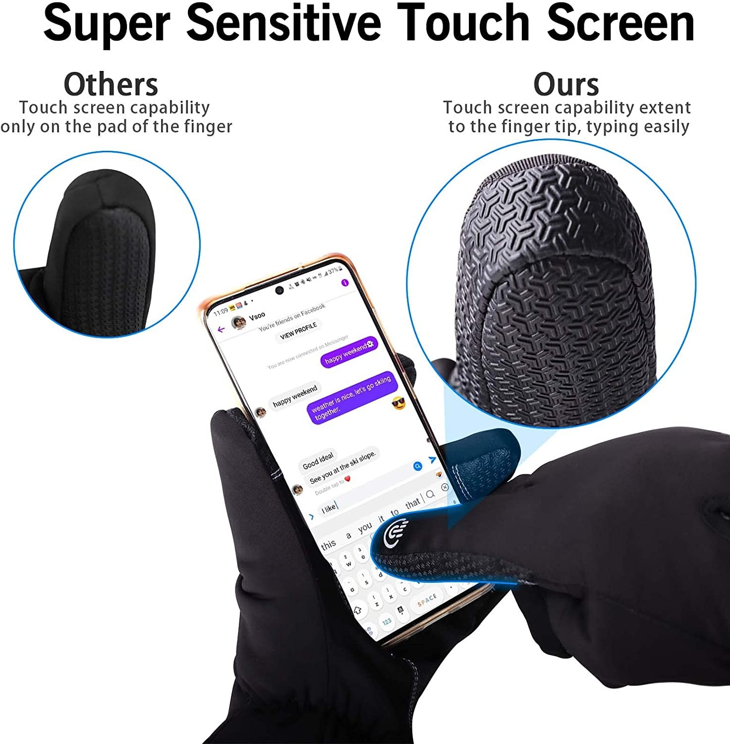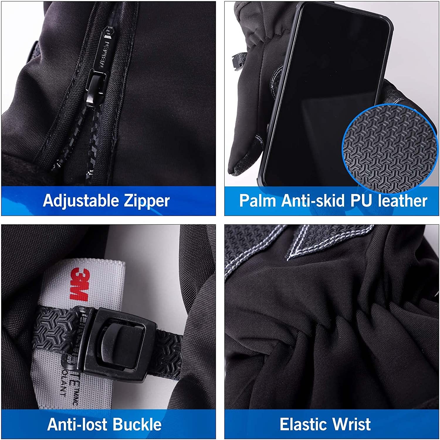【Upgraded Touch Screen】: The winter waterproof gloves coated with larger non-slip PU touch conductive leather extent to the finger tips. The touch screen capability on fingertip allows you to typing easily without taking off the gloves. And you can use touchscreen devices unhindered with the upgraded sensitivity of touch screen capability on the pad of the finger. 【Warm & Comfortable】: The snow gloves are constructed with multiple layers of super-efficient Thinsulate insulation, ensuring breathability and maximum heat retention. They are lightweight enough to ensure optimal mobility and dexterity. The cold weather gloves insulates with 5-layer thermal softshells, which are suitable for icehouse or all kinds extreme winter conditions. Maximum cold resistance temperature up to -10℉. 【Double Waterproof & Breathable】: Waterproof and moisture-wicking TPU membrane insert in waterproof gloves, which ensures maximum dry comfort and breathability so even if you have to endure sweaty,damp,cold or even humid conditions,sweat is released so that your hands remain dry. 【Humanized Design】: Snowboard gloves with the adjustable non-shaking sports waterproof zipper on the wrist can make gloves easy to slip on and off, accommodate for differing wrist thickness, and effectively lock the temperature ; Anti-lost buckles keep winter gloves together when not wearing. 【Ideal for Winter Activities】: The ski gloves excellent for cold weather while skiing,snowboarding, snowmobiling,sledding,riding,cycling, running, dog walking, hiking, climbing, driving, fishing, shoveling snow or other outdoor winter activities. A great gift choice for friends and families.