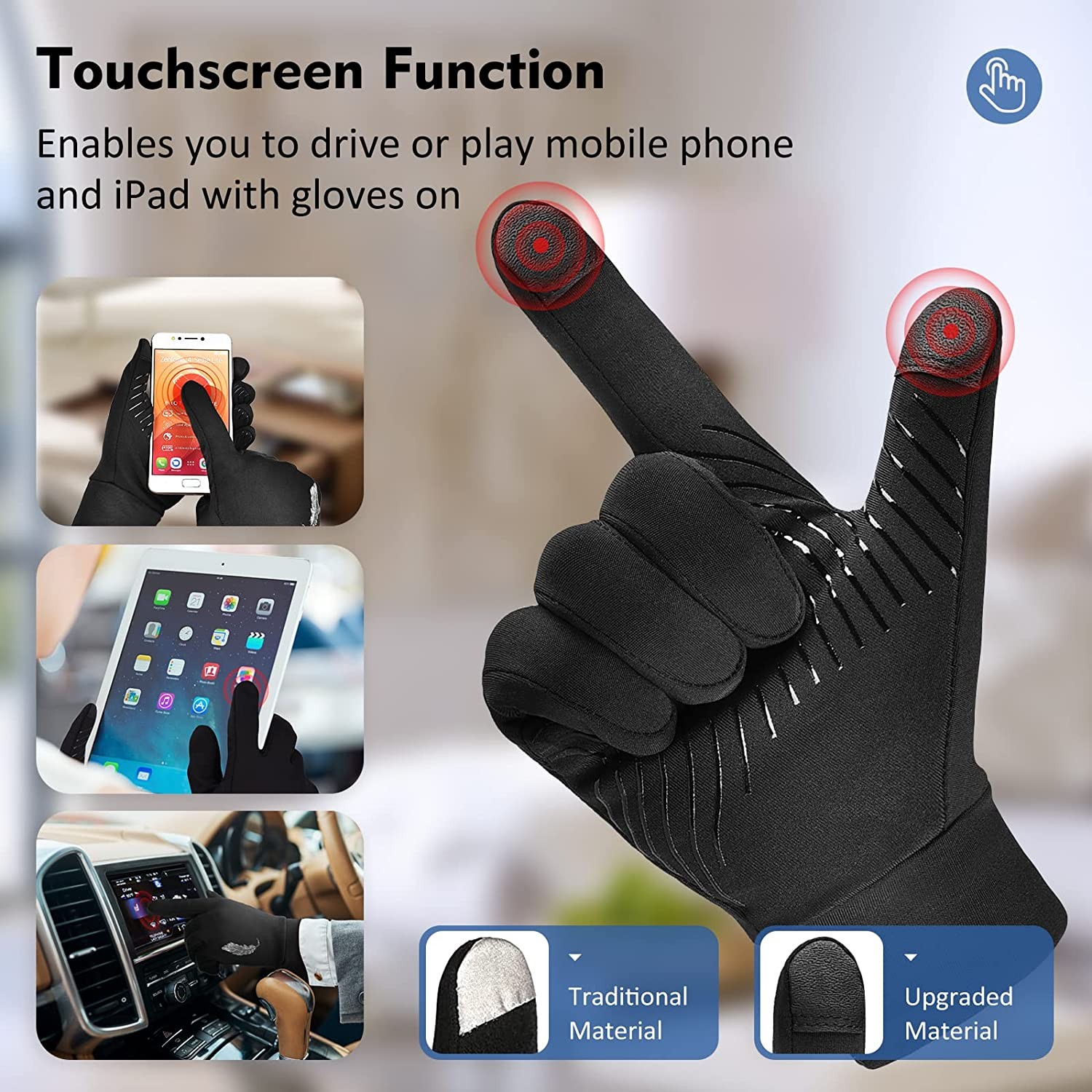 Imported Buckle closure Premium High Quality Material - This winter gloves are made of ultra-soft Lycra & Conductive fabric, which possesses great elasticity, provides you with a snug fit for the maximum comfort and warmth. Wearing this close-fitting soft winter gloves, you can do outdoor sports very flexibly, such as running, cycling, jogging, driving etc Anti-slip Silicone Palm & Reflective Strip - The palm of our running gloves with large area anti-slip silicone and the fingertips with anti-slip silicone provides a best slip resistance when you catch little things and grip electronic devices like phone, pad. Besides,it will be a good partner when you are driving or cycling or doing indoor outdoor activities. Simple but unique trendy reflective strip are printed on the gloves can increase the visibility and safety at night Sensitive Touch Screen Gloves - This warm sport gloves use upgraded touch screen conductive fabric on the thumbs and index fingers, the touchscreen working experience is more sensitive, more durable. You can use the smart phones, iPads and other touchscreen devices wearing this touch screen Gloves Comfortable & Warm to Wear - The lightweight kids touchscreen gloves are made of elastic material and soft short plush lining with high-density, extra longer stretchy double layer cuffs with double shirred elastic wrist keep your kid’s hands warm to protect their hands from cold wind in autumn and winter and offer a snug fit at the same time Ideal Gift - This soft gloves are waterproof and windproof,so they are helpful when you going out in Autumn or Early winter days. Therefore,this thin running gloves are ideal for hiking, running, cycling, driving, walking dogs and other leisure activities. Also,it's a nice gift for your family ,friends, and yourself