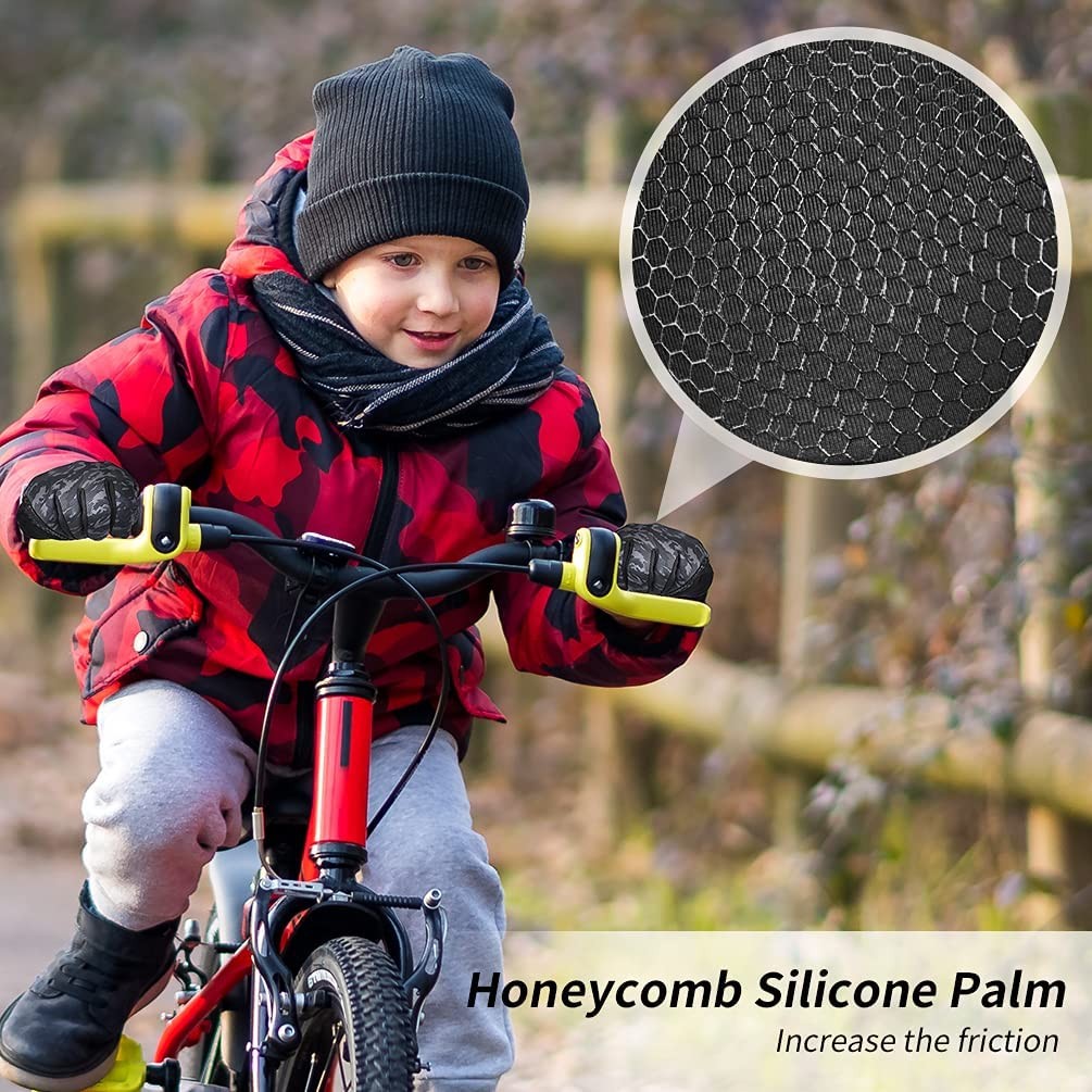 Kids Winter Warm Gloves with Grip - Boys Girls Thermal Fleece Running Cycling Gloves Touch Screen Cold Weather Soft Anti Slip Mittens for Sport Ski Snow Bike Hiking 6-12 Years