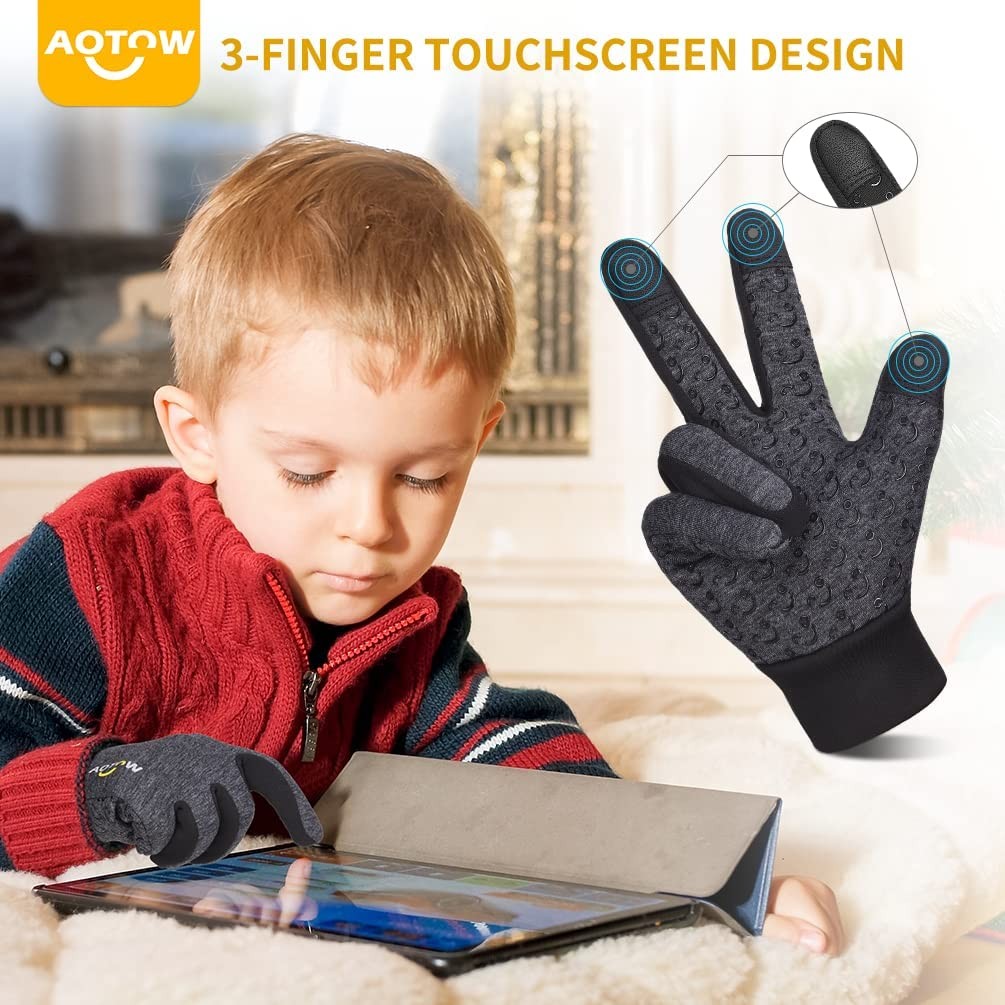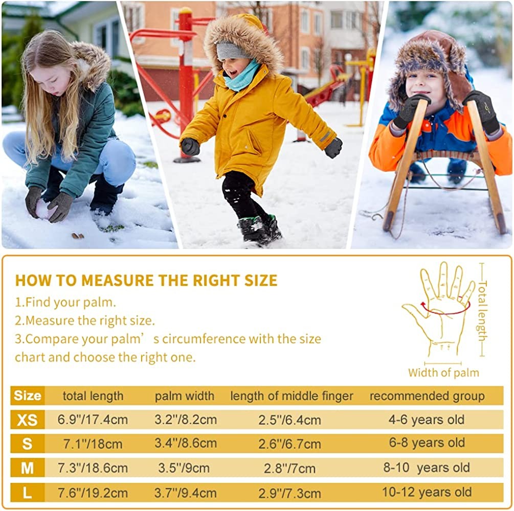 Lining: silver fox fleece, Outer lining: dacron & spandex Imported Pull On closure Well-selected cloth: the kids winter gloves are made of abrasion resistant and stretchy spandex and thickened silver fox villi to provide you durable and warmer usage without bulk. Soft feeling would be loved by 10-12 years old kids, who could wear extra large size Windproof film: our gloves adopt liners of thin film laminated between the surface and the wool to effectively prevent warmth from slipping away and offer hand great heat preservation 3-finger touch screen: distributed in the fingertips of 3 fingers, allowing you to easily type in short texting, zoom in or out your images and play smart phone with gloves on Considerate details on the back: the back of our gloves adopt splash proof design to resist water, rains and snows from entering the gloves inside while using reflective strips to incre3-finger touch screen: distributed in the fingertips of 3 fingers, allowing you to easily type in short texting, zoom in or out your images and play smart phone with gloves onase the visibility and reduce the injury when there is poor light Anti-slip silicone: shaped into the 7-shaped pattern extended to the fingers , which adds the friction and helps you to grip items firmly. The non slip gloves are fitted for various outdoor sports such as ski, skating, hiking, fishing, biking, cycling, batting, hockey, climbing and equestrian sport