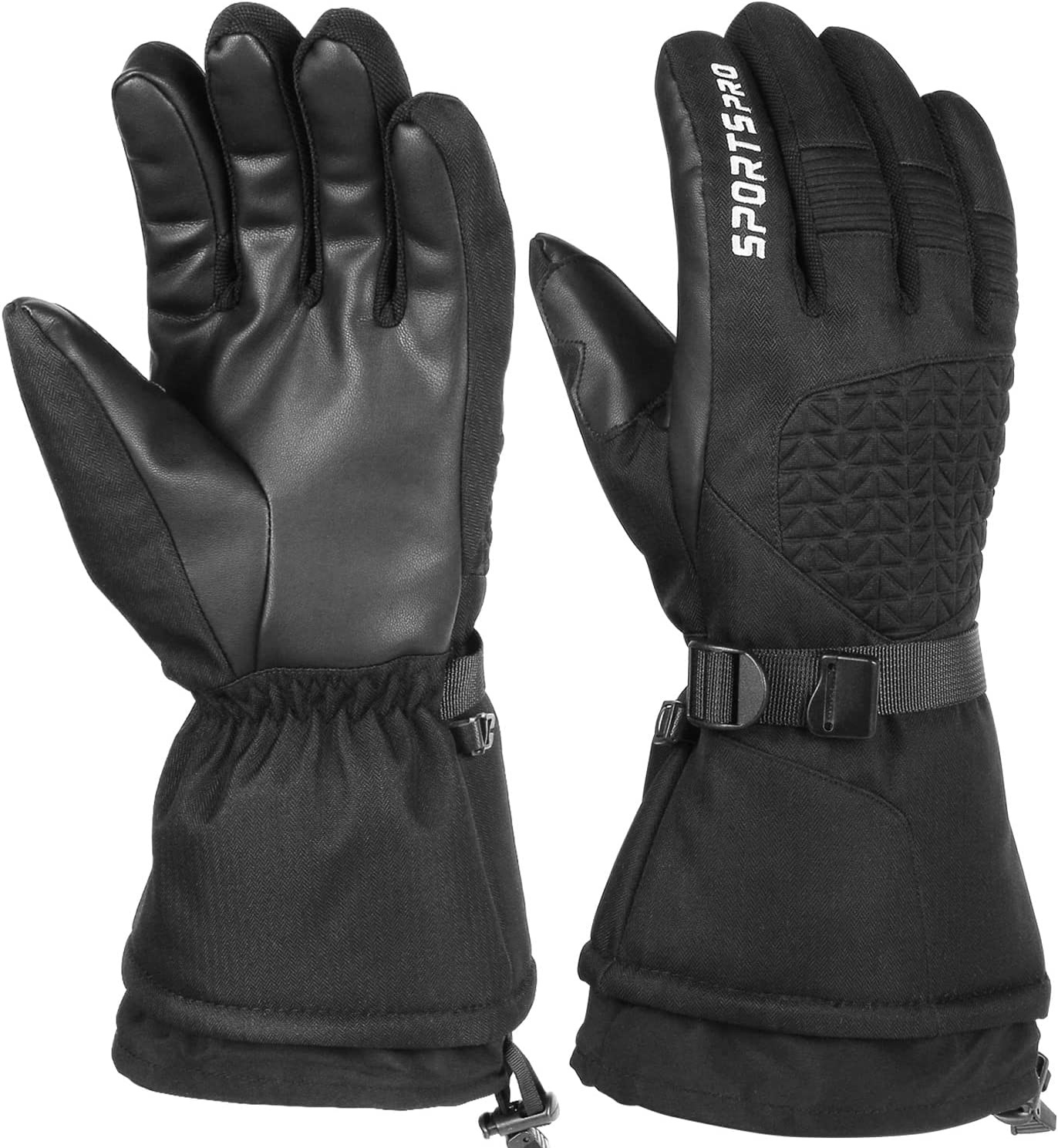 Thinsulate Mens Ski Gloves, Waterproof Insulated Cold Weather Snow Gloves with Touchscreen PU Leather Palm for Men Snowmobile Skiing Snowboard Sledding Winter Outdoor Sports