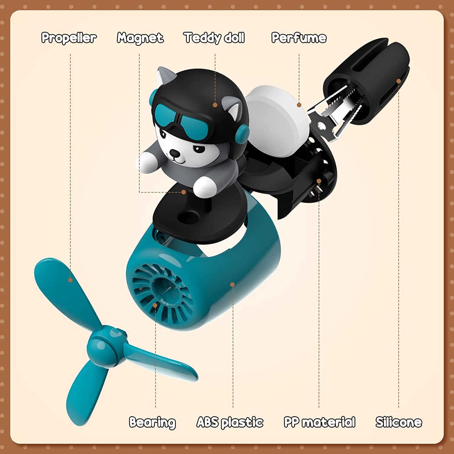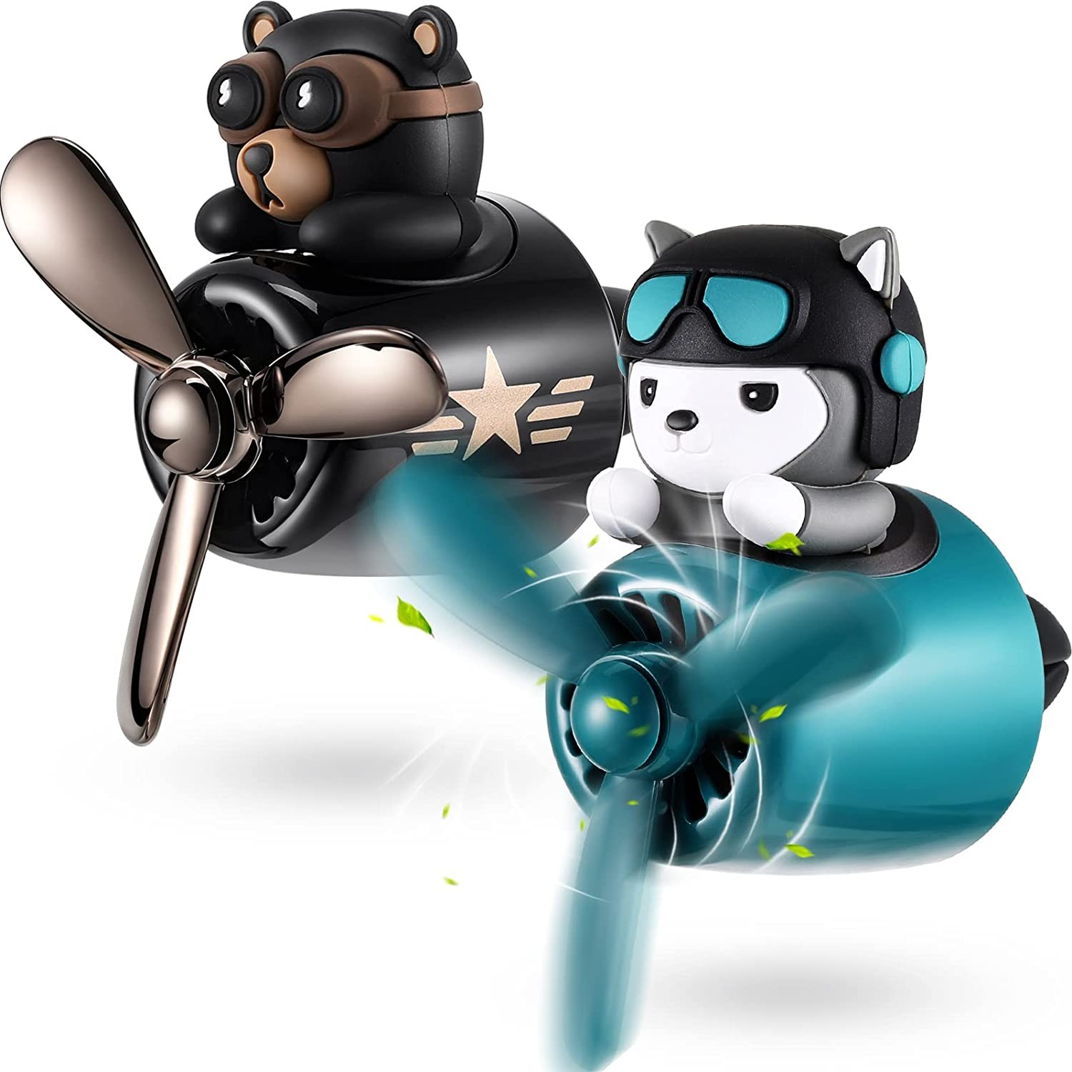 Cartoon Bear and Dog Design: car perfume air freshener adopt adorable designs, the main shapes are retro helicopter and bear pilot, and the colors are brown and black; The blade rotates gently to meet the function as diffuser, also adding more fun at the same time
