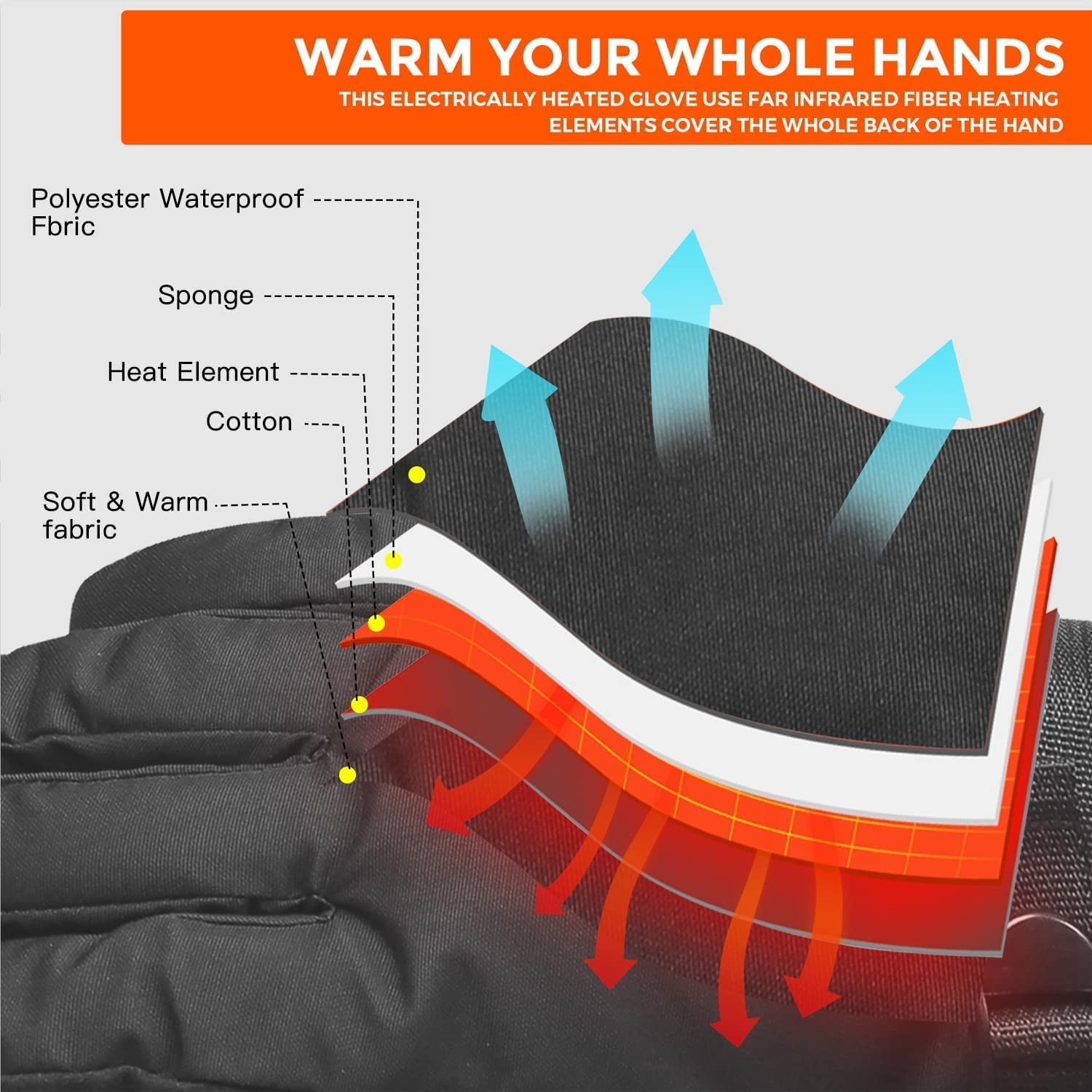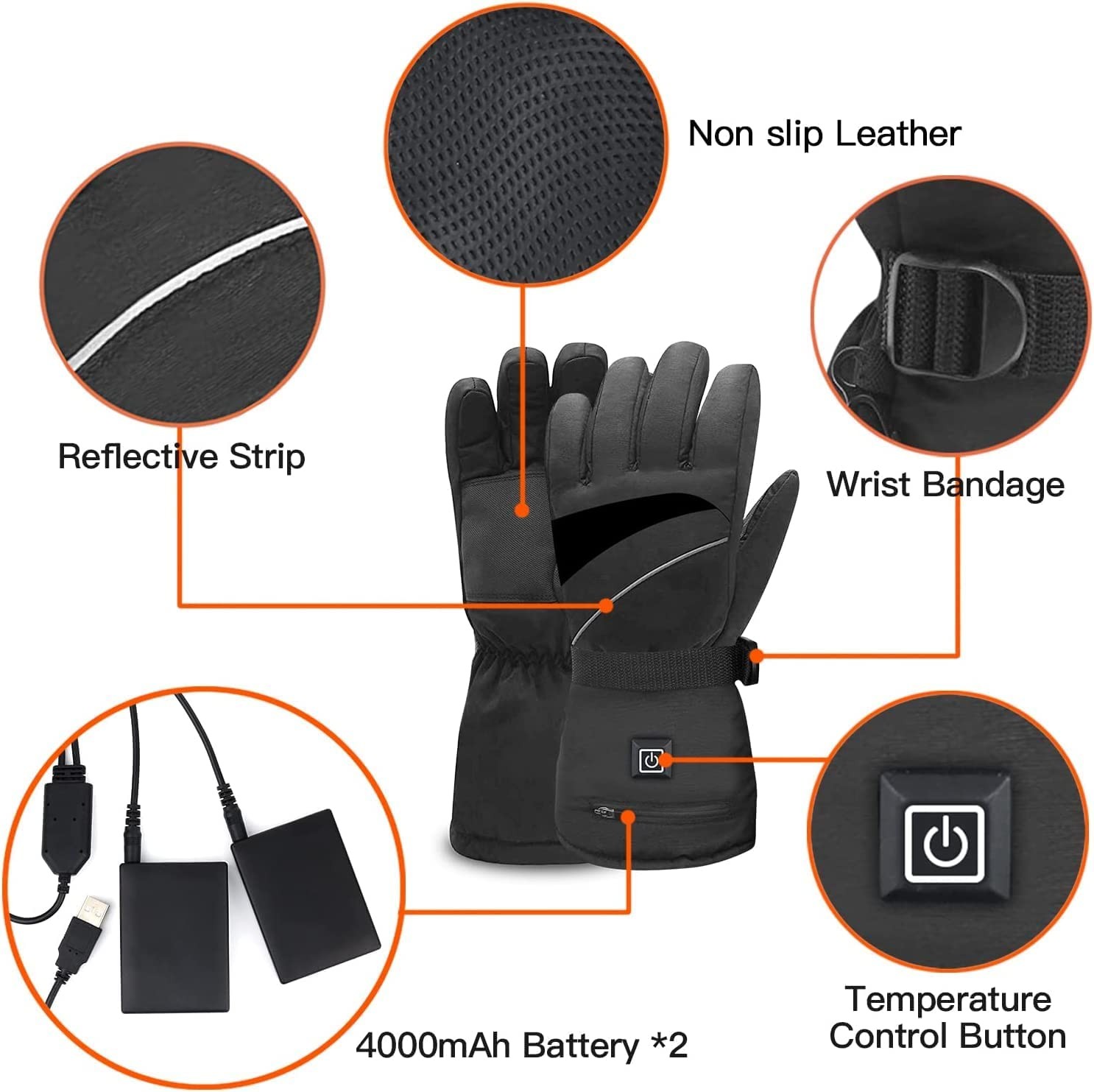 [PERFECT FOR OUTDOOR SPORTS] Safe 3.7V 4000mAh battery-powered heated gloves can be used in any situation and environment in cold weather. Such as mountaineering, skiing hiking, Hunting, Snowboarding, Cycling, Ice-Fishing, Skiing, Climbing, etc.