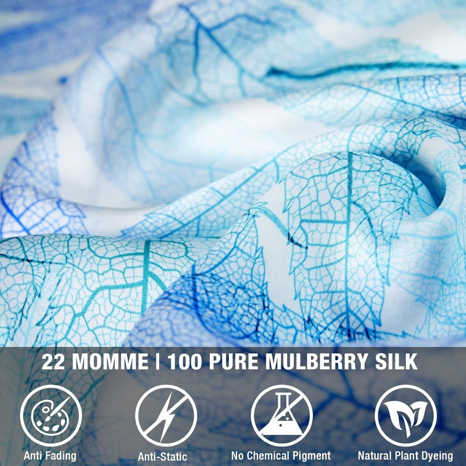 FELYSILK 王藍葉圖案真絲枕套適合頭髮和皮膚 20 英寸 x 36 英寸,22 個媽媽桑蠶絲枕套帶拉鍊