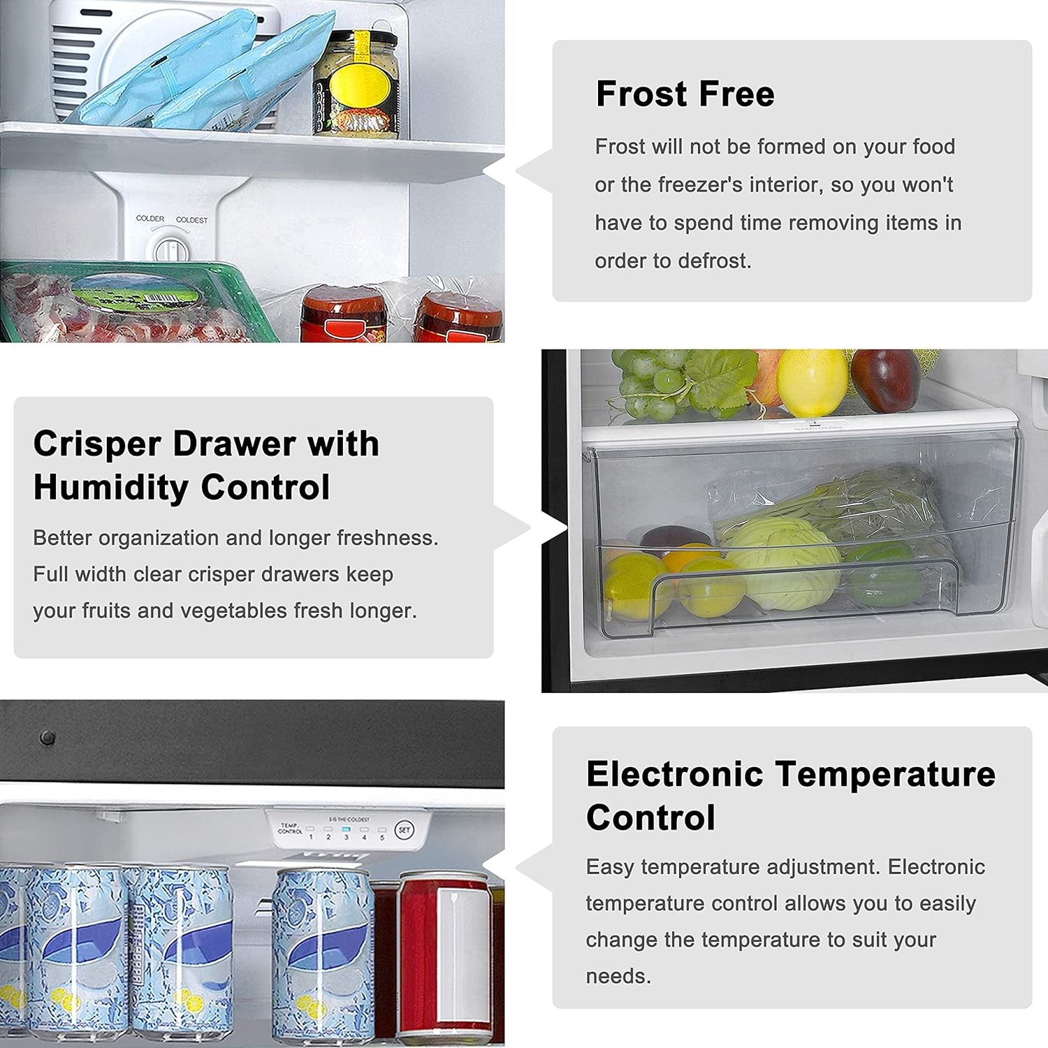 SPACE SAVING & LARGE CAPACITY: This top mount refrigerator with 23.58*27.68*64.84 inches measurement and 12.0 cubic feet capacity is perfectly sized to keep your favorite beverage cool, fruit or other food fresh, while taking up minimal space in your college dorm, RV, apartment, garage, camper or basement..Amperage : 1.2 amps REMOVABLE GLASS SHELVES: The glass shelf and drawer separate fruit and vegetable. Glass shelves can separate your different types of food. A removable slide-out glass shelf provides more ways to organize your storage needs. ENERGY SAVING & LOW NOISE: Top mount refrigerator uses R600a high-efficiency and low-energy consumption compressor, it can cool food quickly with lower energy. Energy efficient and Interior Light illuminates the interior. ADJUSTABLE ELECTRICAL: THERMOSTAT CONTROLThe thoughtful refrigerator offers an adjustable electrical thermostat to separate freezer compartment, bright LED interior lighting and vegetable crisper to make your life easily.