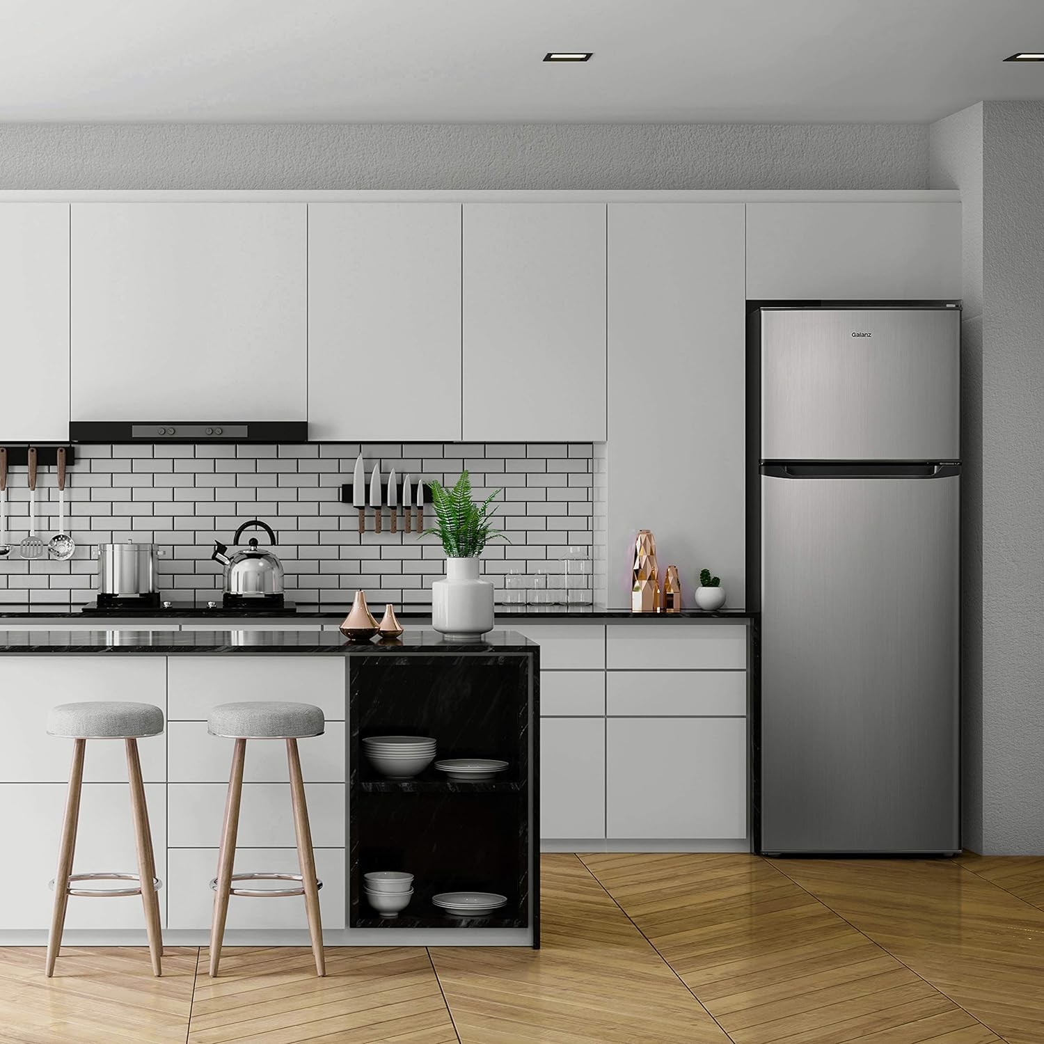 Galanz GLR12TS5F Refrigerator, Dual Door Fridge, Adjustable Electrical Thermostat Control with Top Mount Freezer Compartment, 12.0 Cu.Ft, Stainless Steel, 12
