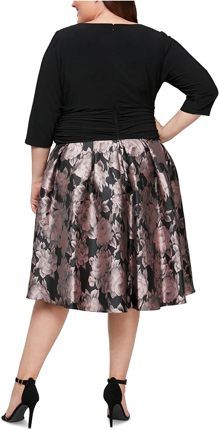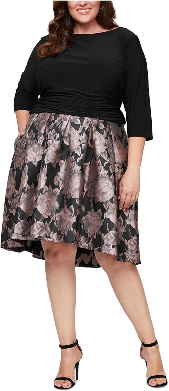 95% Polyester, 5% Spandex Imported Hand Wash Only Stretch Jersey 3/4 Sleeve Bodice with Allover Floral Printed Jacquard Pleated Skirt Ruched waist and Invisible Back Zipper women's dresses, dresses for women wedding, birthday work dress, desk to dinner, party, sexy, fitted, Plus Size Sleeveless tropical printed hi-lo maxi dress with belt Dress for women, prom dresses, dresses, maxi dresses for women, summer dresses for women, wedding dresses, women's dresses Center Back Length 44.25 "