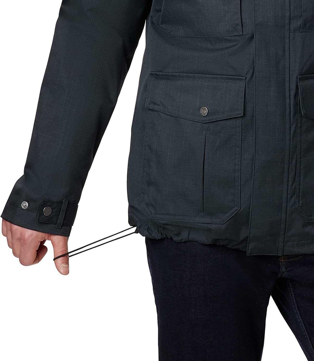 HANDY FEATURES: Incorporating a removable drawcord adjustable hood, zippered chest pockets, dual entry hand pockets, adjustable cuffs, and a drawcord adjustable hem — all ensure full wind, rain, and snow weather protection