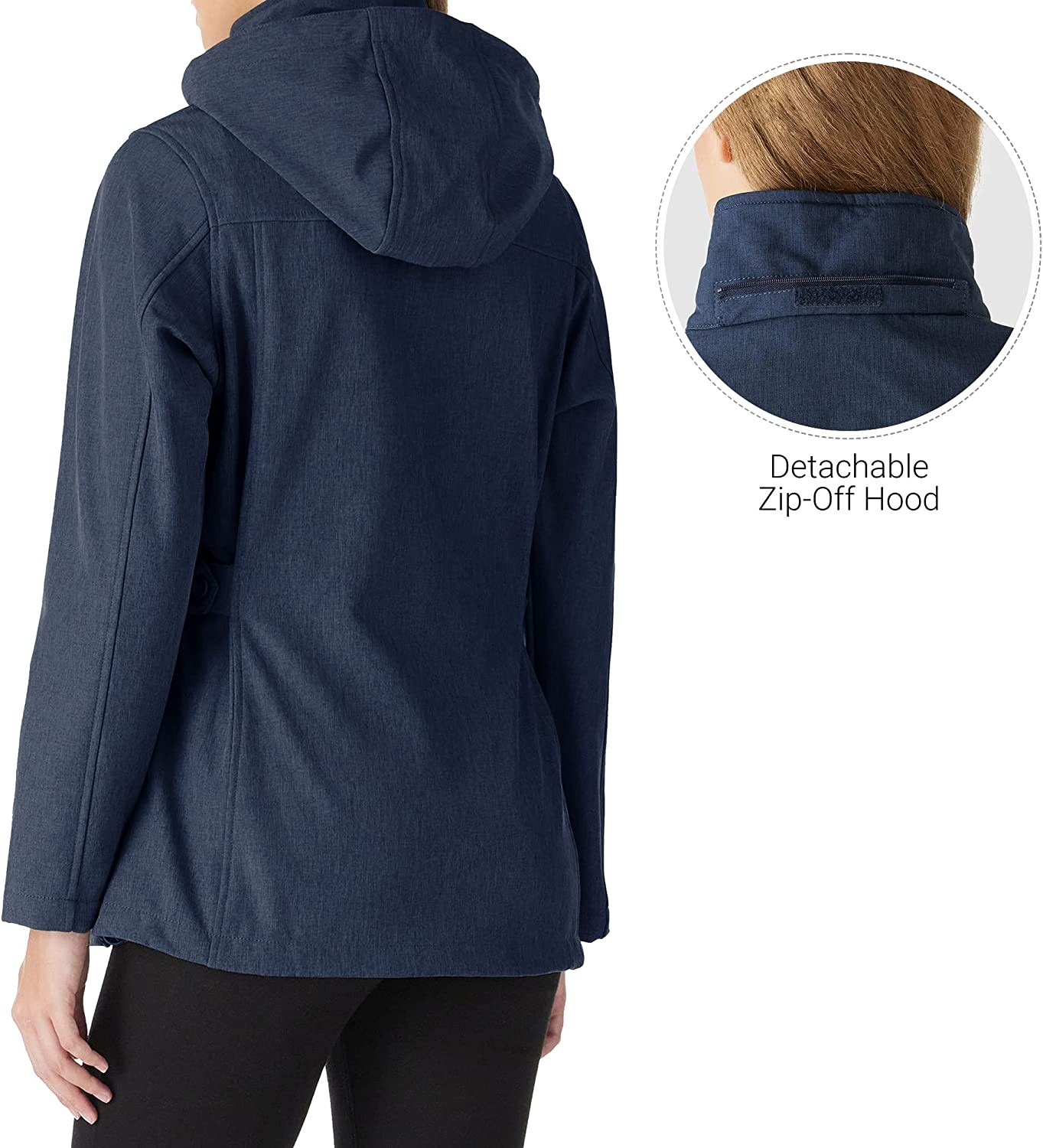 Outdoor Ventures Women's Softshell Jacket with Removable Hood, Insulated Windbreaker Waterproof Warm Fleece Lined Coat