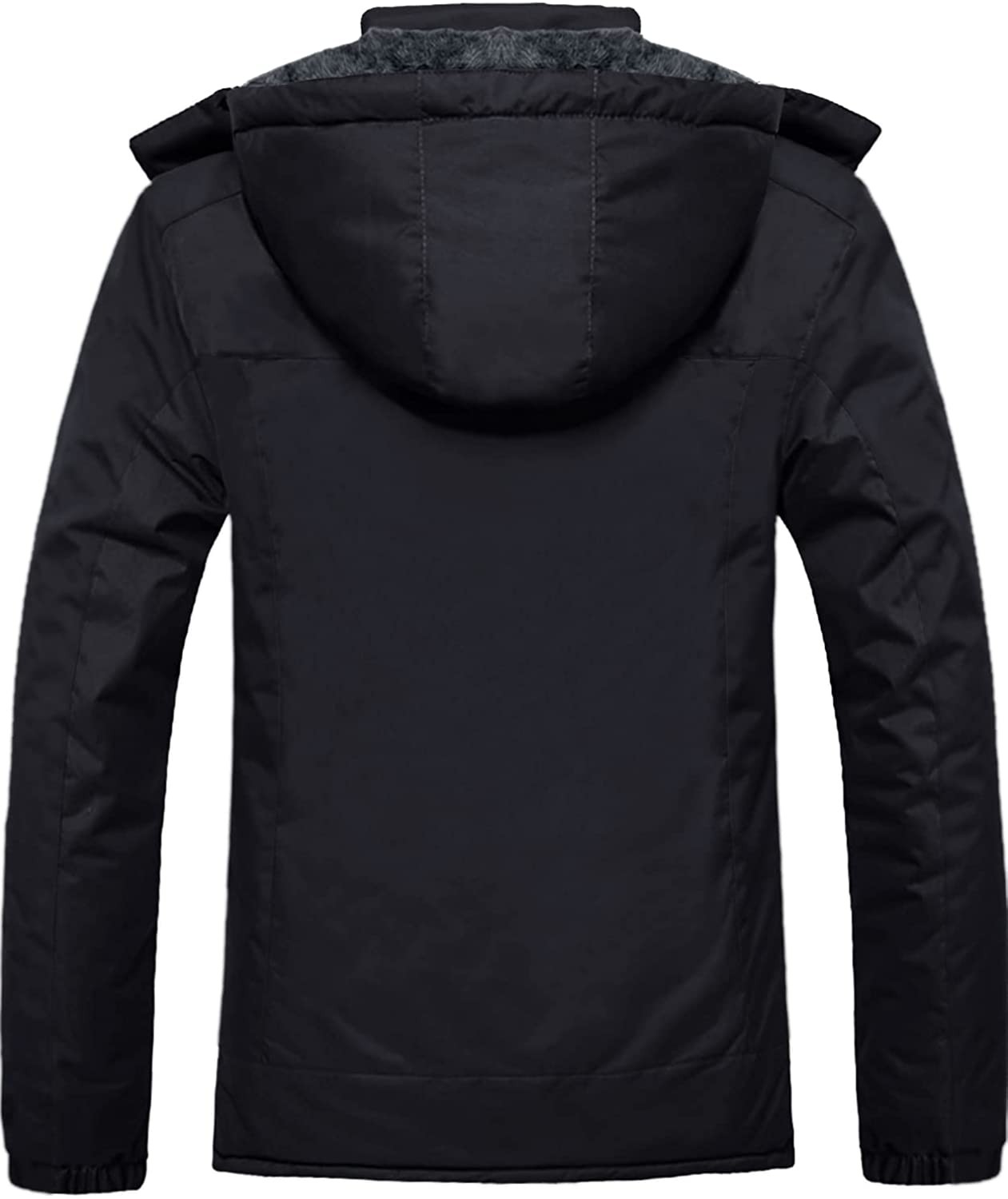 Zipper closure Warm & Durable: The outer fabric is durable and wear-resistant, and the inner soft fleece lining is thick enough to keep you warm and comfortable during the cold winter yet breathable to wear. The stitching is reinforced, and solid enough to wear for years. Waterproof & Quick Dry: Professional water repellent coated, the waterproof level is 10000mm/H2O and all the zippers are waterproof design. You won't worry about getting wet while skiing, snowboarding, or on rainy days. Our waterproof rain jacket will provide you with all-around effective protection against stormy or foggy weather, keeping your body dry and warm all day long. Windproof Design: 1. Adjustable velcro cuffs and stretchable glove with thumb hole help seal in warmth; 2. Detachable storm hood, stand collar, and full zipper closure, all the well-designs keep out the wind effectively; 3. Wear a resisting soft shell that is highly windproof and warm. Occasions: Our loose-fitting outdoor travel insulating jacket is ideal for downhill skiing, snowboarding, snow sports, hiking, mountaineering, camping, rock climbing, biking and other winter outdoor activities. Practical Pockets: 2 zippered hand pockets, 1 zippered chest pocket, 1 internal big mesh pocket, and 1 internal secure pocket, suitable for storing phone, wallet, passport, and other accessories. There is an earphone line fastening device inside the jacket.