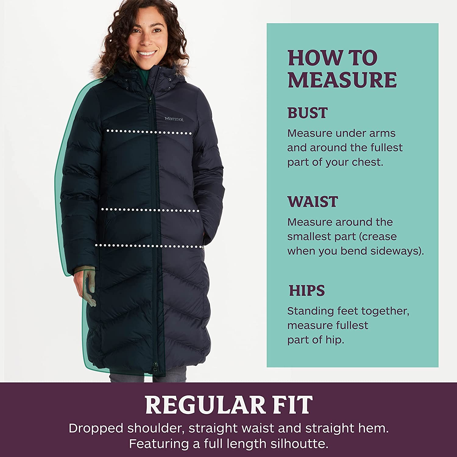 100% Polyester Imported Zipper closure Machine Wash Stay Warm And Effortlessly Chic - With this full-length parka, you don’t have to sacrifice style to be protected from the elements. Tough, water-resistant fabric and high-quality down insulation make it a cold-weather staple for city living, the great outdoors, and everything in between. Full-Coverage Comfort, Modern Design - Made especially to provide full coverage and protection in extreme winters, coats in our Montreaux collection are insulated with 700-fill power down and treated with Down Defender to repel moisture. A plush, fleece-lined torso and micro-fleece cuffs make this coat extra comfortable. Chevon baffles and a zip-off hood with removable faux fur ruff add modern appeal. Fashionable And Functional - Yes, it’s got pockets — four of them, in fact. The Montreaux Full-Length Puffer Coat allows for safe storage of personal items in its micro-fleece-lined zippered handwarmer pockets as well as in its interior zip pocket and drop pocket. Innovating To Improve The Human Experience - Marmot strives to deliver best-in-class warmth, protection and ease of use on every product. To prevent bunching, we’ve added a two-way zipper — and just about every feature you could want in a stylish winter parka. We Have You Covered - With Marmot, we warrant every product we make to be free of manufacturer defects. The best part is you do not need to register your product. Our lifetime warranty covers you from the moment you purchase our apparel or equipment.