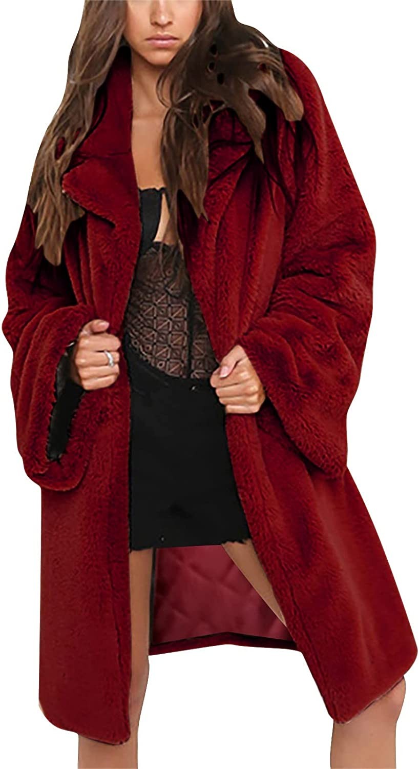 Keep Warm: The women's mid-length loose faux fur coats has a beautiful, gorgeous look that will make you look longer and leaner with elegance and style. It will feel like a thick blanket on cold winter days, keeping you warm and cosy and away from the wind and snow.
