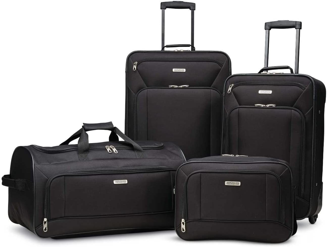 Ultra Lightweight 600D shiny polyester construction Uprights have smooth rolling in line skate Wheels for effortless mobility Multiple interior and exterior pockets keep you well organized Push Button locking handle is designed to fit comfortably in your hand Reinforced corners defend against the harshest travel conditions Includes Boarding Bag: 10H x 15W x 6.5D", Wheeled Duffel: 11.5H x 23W x 12D", 21" Upright: 21H x 14W x 7D", 25" Upright: 25H x 16.5W x 8D" Backed by 10 year limited warranty