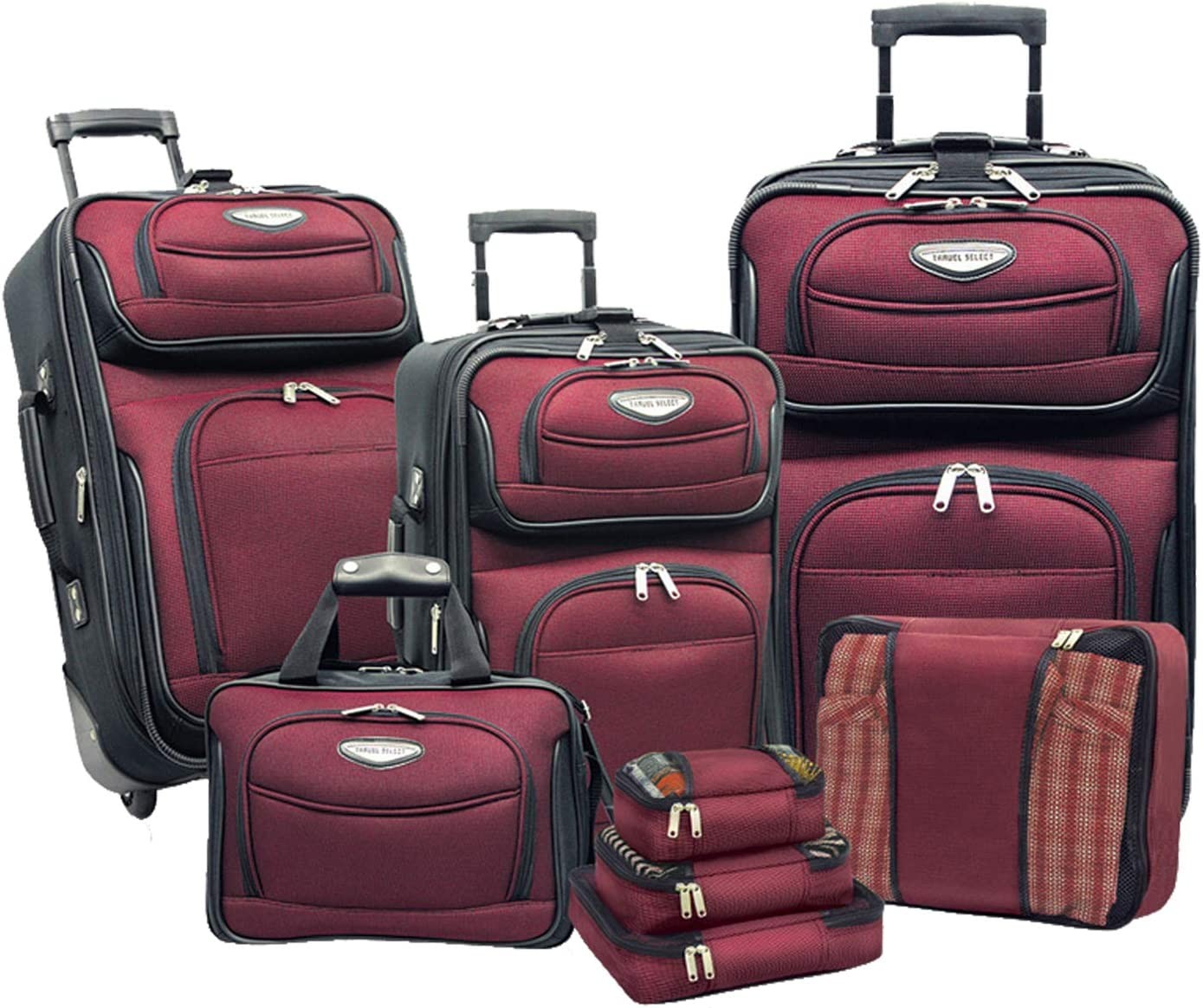 Travel Select Amsterdam Expandable Rolling Upright Luggage, Burgundy, 8-Piece Set