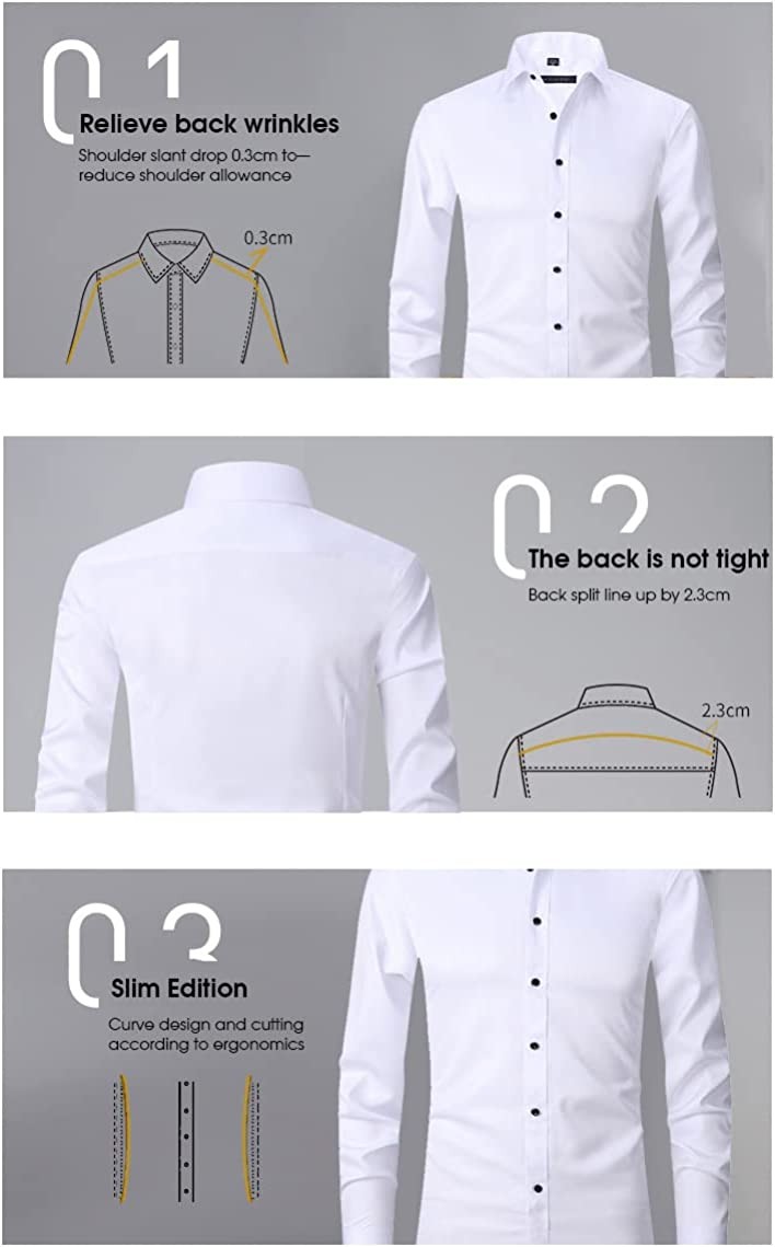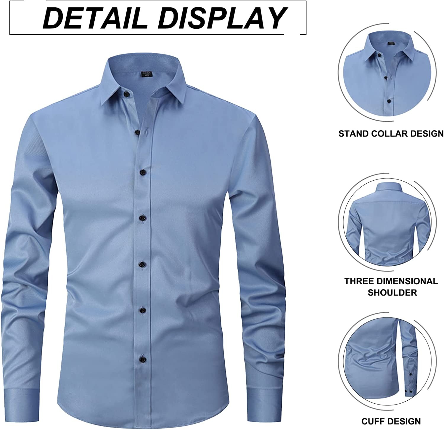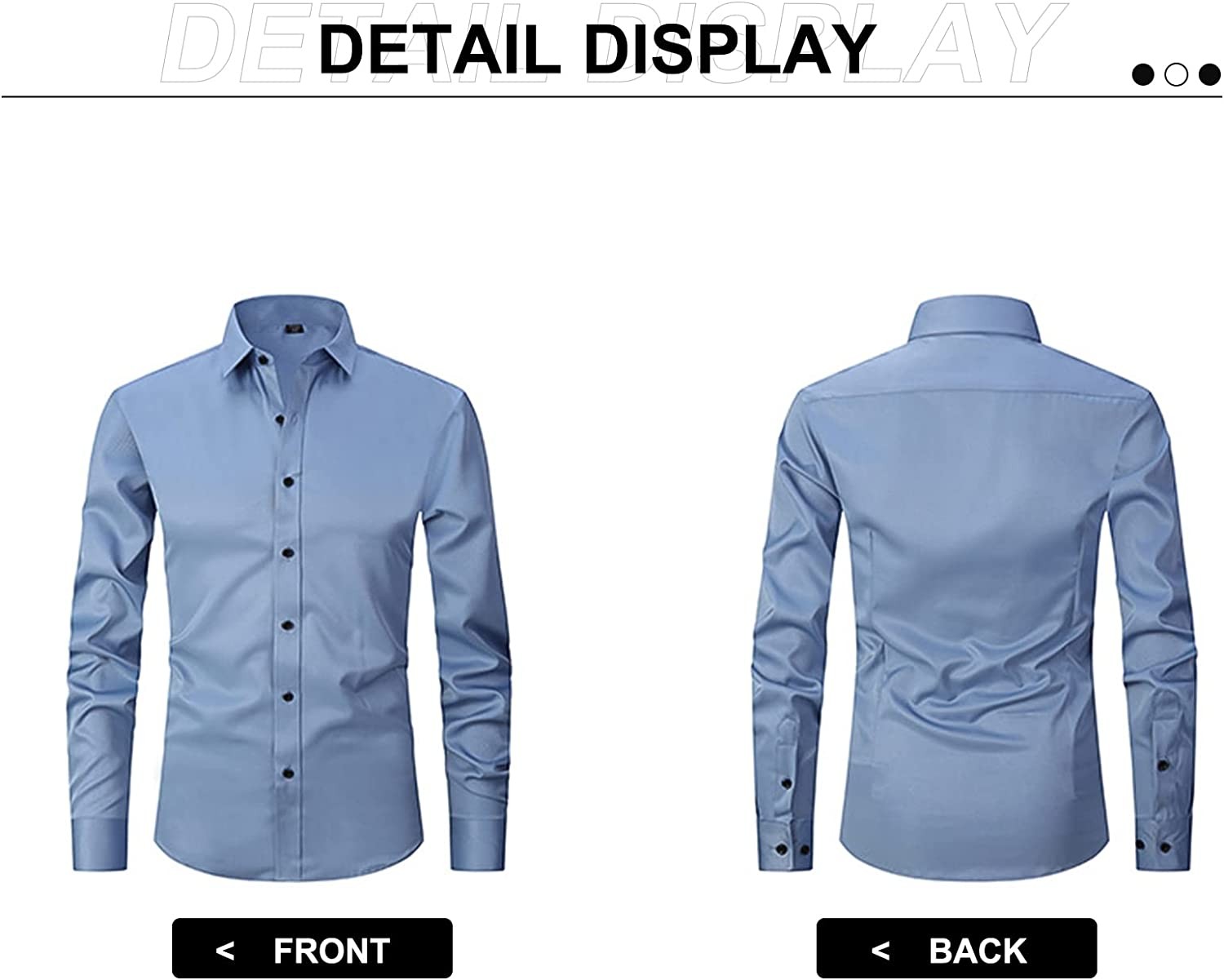 MATERIAL: Mens dress shirt made of polyester, blended with spandex to make dress shirts, durable, easy to care for and provide some stretch for a comfortable wearing experience.