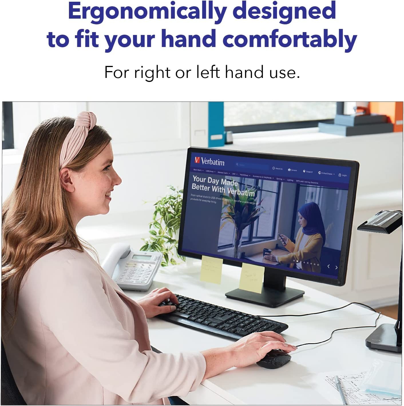 Computer mouse with a contoured ambidextrous design that fits comfortably in your hand with a sleek, glossy finish Plug and play USB corded connection ready for instant use High-resolution optical technology for smooth and precise tracking; scroll wheel for smooth and precise scrolling Windows, MacOS, Chrome OS, Linux Kernel 2.6 and higher compatible Verbatim has been a leader in data storage technology since 1969, and guarantees this product with a 1-year limited warranty and technical support