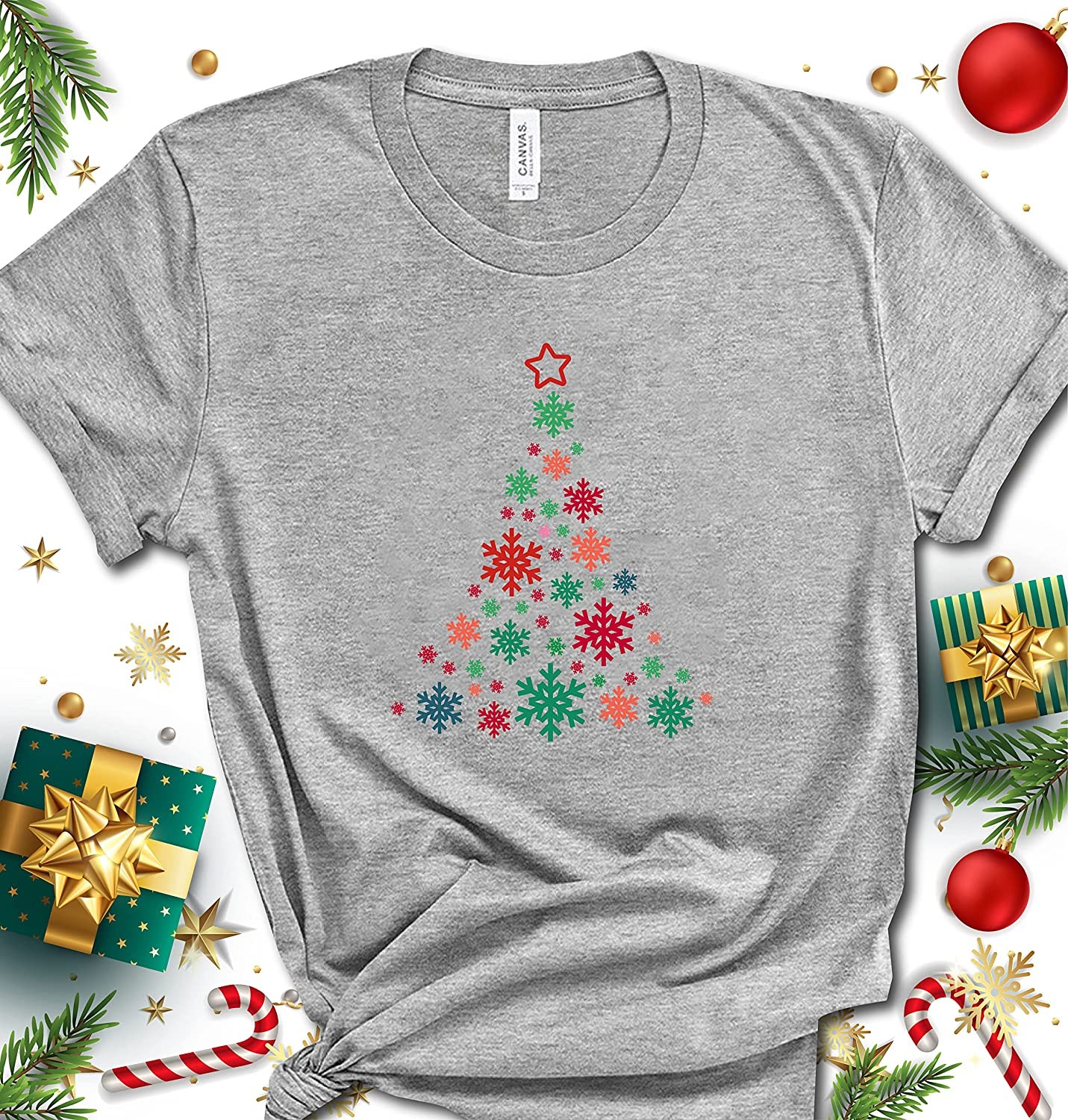 Pine Tree Ornament T-Shirts, Christmas Tree Shirts, Family Christmas Shirt For Men and Women, Snowflakes Tee, Winter Holiday T-Shirt For Mom or Dad, Christmas Presents