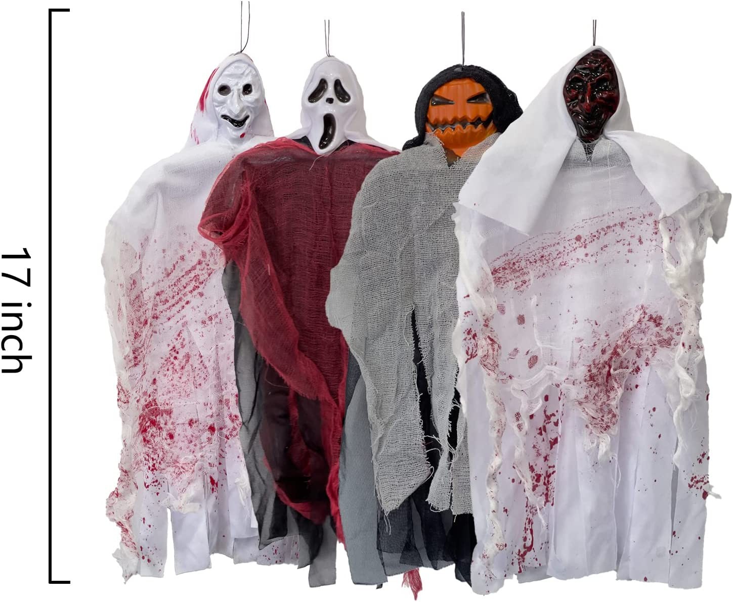4 Pcs Halloween Decorations Hanging Skeleton Grim Reapers, Haunted House Props Skull Ghost with Bendable Arms for Party Supplies, Outdoor and Indoor, Lawn Yard, Patio Tree