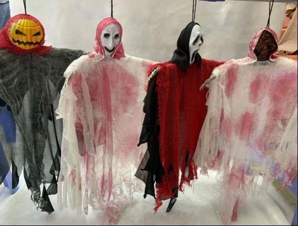 【Super Value Set】The set includes different colors dress grim reaper ghost decoration. Different dress and size helps you create creepy and scary atmosphere for any Halloween events. Made of high quality plastic and polyester fabric, These ghosts look scary featured with ragged flowing robe and creepy smile.