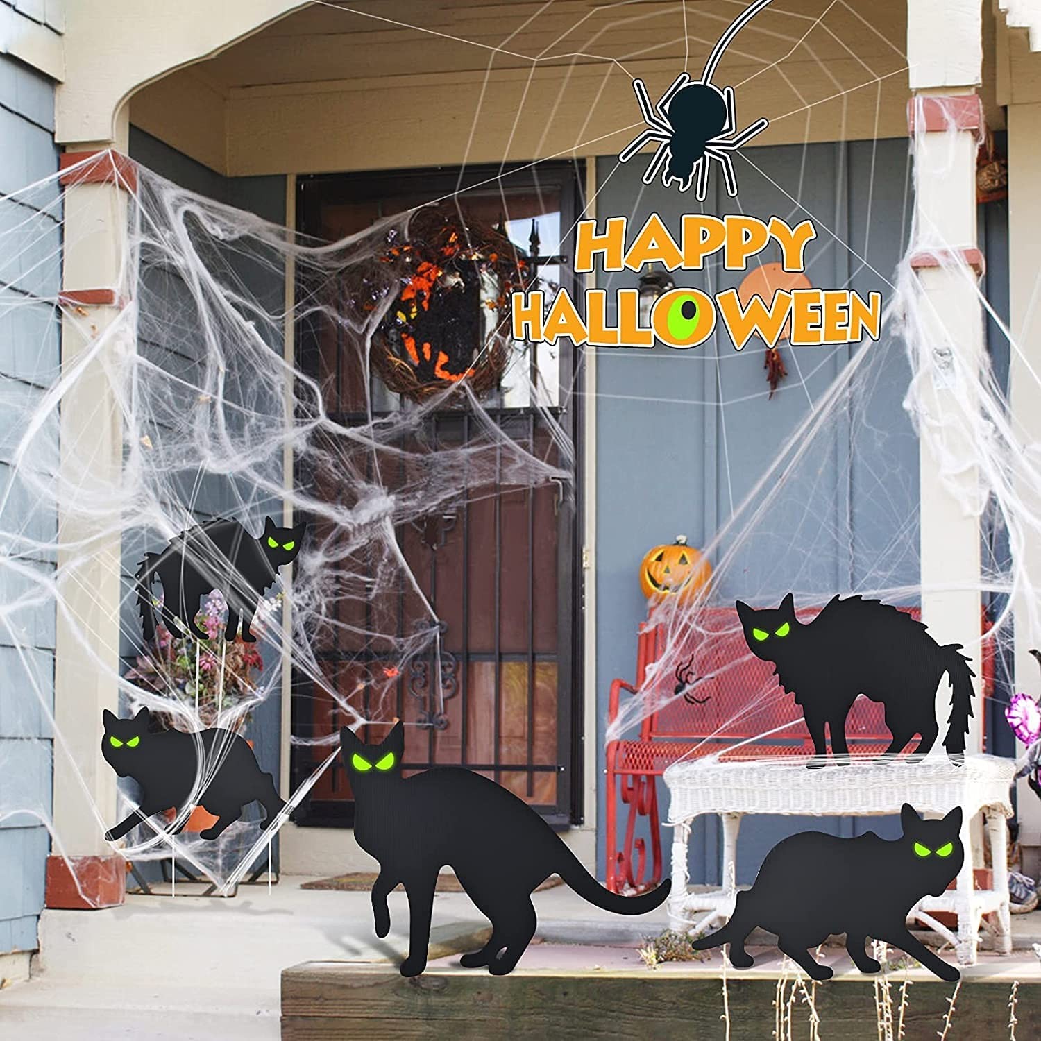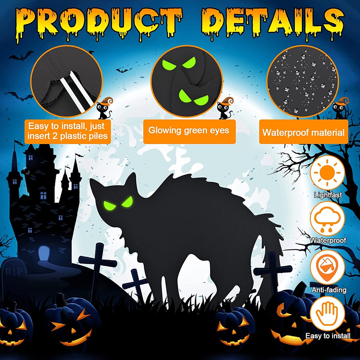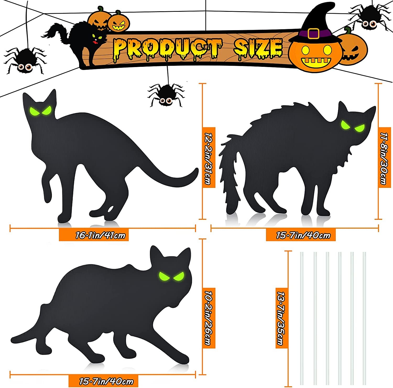 ?CATS HALLOWEEN DECOR: Halloween decorations set includes 3 pcs different black cats, not only add a lot of fun to your yard and also increase carnival atmosphere of Halloween. ? HIGH-QUALITY: Outdoor Halloween decorations are made of corrugated plastic hollow plates, which is durable and reliable, waterproof, lightweight, you can use it for a long time. ?EASY TO INSTALL: These Halloween decorations clearance install easily, simply insert two stakes into each specific location and insert it into the lawn/ outdoor/ garden/ yard or anywhere you like. ?NEW DESIGN: The decorative color and shape of the cat is perfect for Halloween scenes, bring you a creepy halloween feel, you can use it in Halloween party decor, yard decor and outdoor decorations, very great! ?MULTI-USE: This scary Halloween decoration has an attractive design that is perfect for Halloween decorations outdoor/ Halloween garden decorations/ Halloween yard decorations.