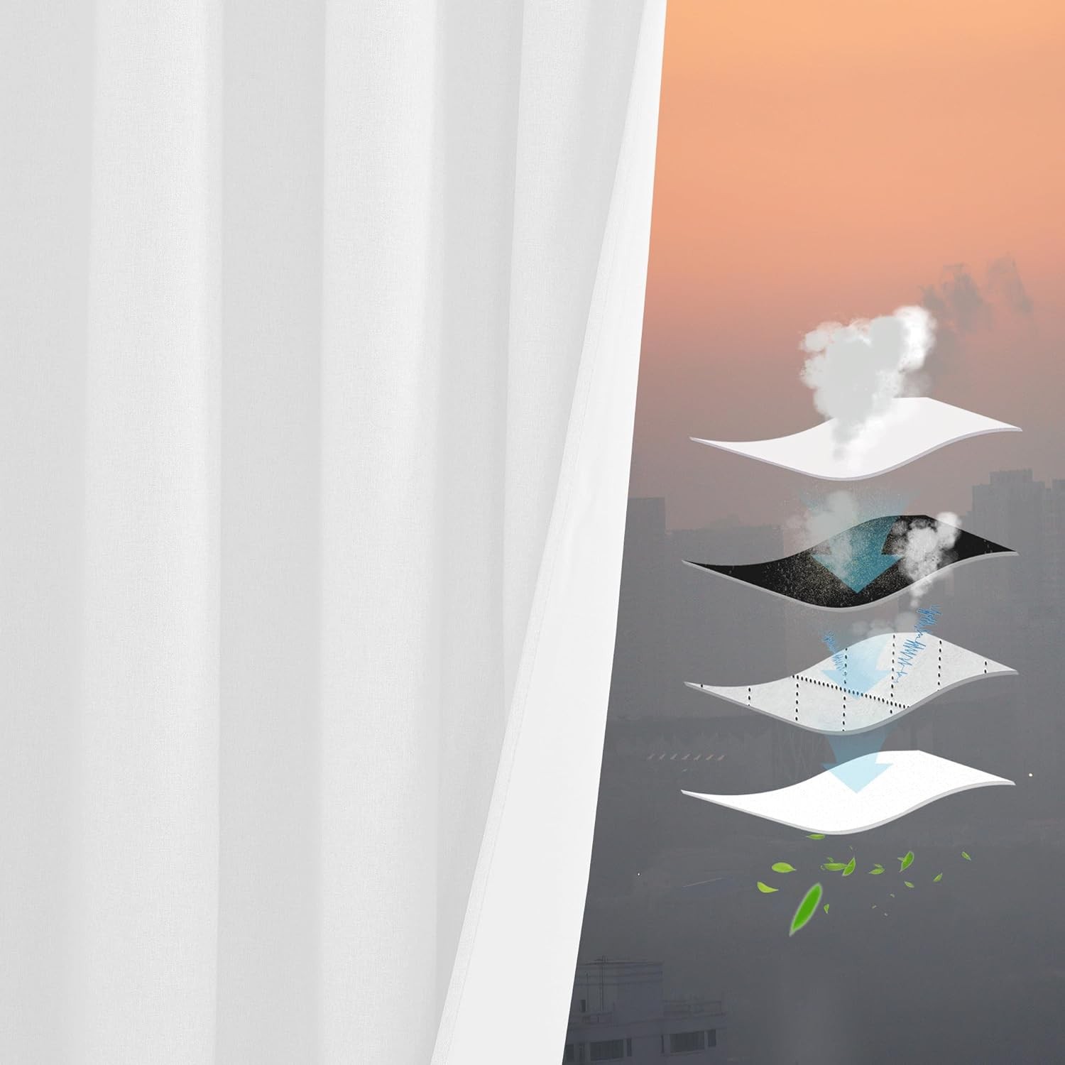 RYB HOME 4 in 1 Set Dust Filter - Soundproof - Blackout - Insulating, Energy Efficiency Linen Curtains for Kids Bedroom Living Room Divider Apartment Hotel Office Theatre, White, W 52 x L 84, 2 Pcs