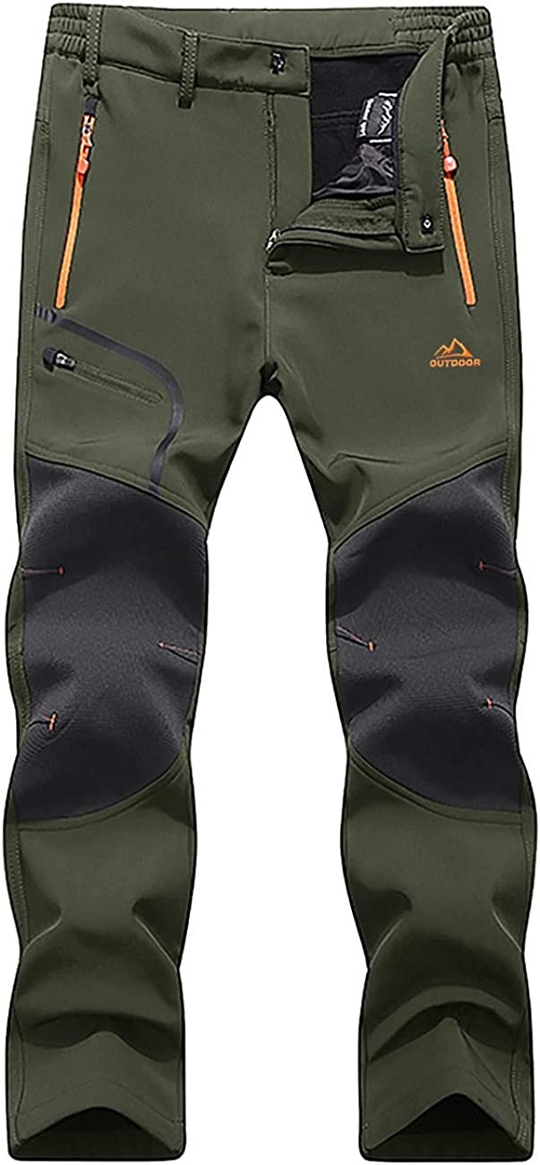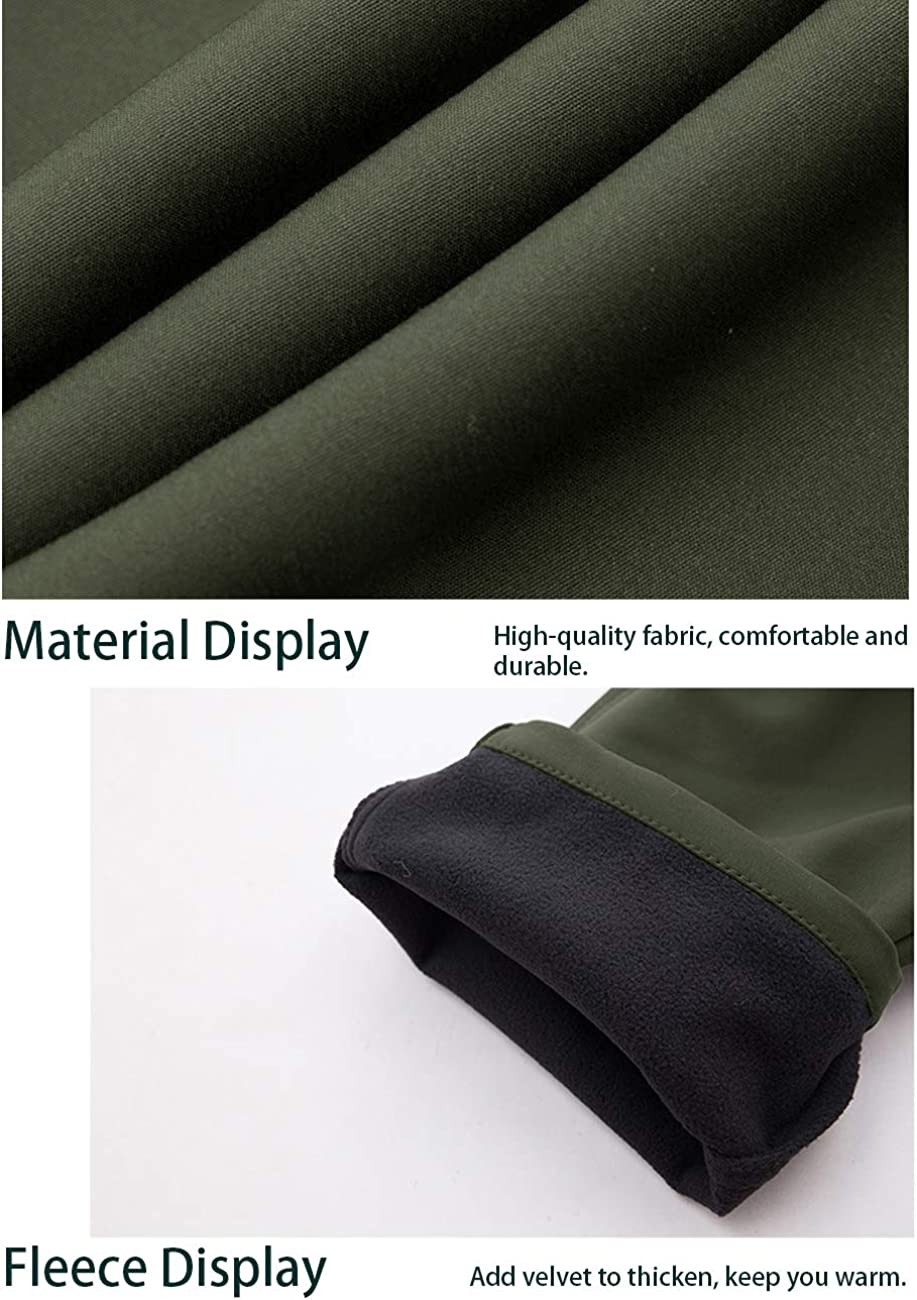 Zipper closure Material: 92%Polyester, 8%Spandex; Comfortable fabrics bring you a wonderful experience. 4 Zipper Pockets: The hiking pants have two zipper pockets on the front, one front zipper pocket on the right thigh, and one zipper pocket on the right side of the hip; Multi-pocket design can better meet your needs. Elastic waist: The adjustable elastic waist and the design that can use the belt help the pants fit you better. Features: windproof, warmth, durable and wear-resistant; Designed for winter outdoor enthusiasts, knee anti-scratch fabric and thick fleece lining design can better protect your body. Suitable for: Daily wear in winter, hiking, camping, snowboarding, travelling, hunting, cycling and other outdoor sports.