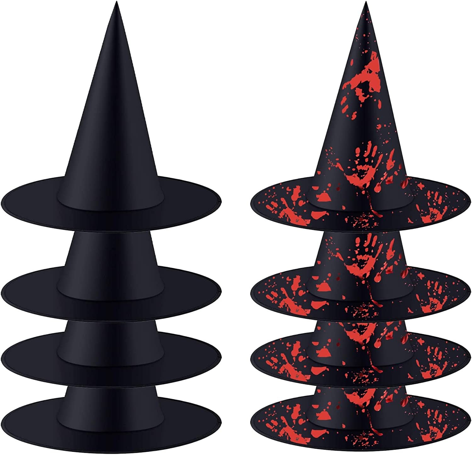 ? Halloween Hanging Witch Hat: Black novel witch hat to cosplay a witch at Halloween party, scary theme party, carnival, fancy dress party and other occasions, bringing fun to the party, making you attractive and be the focus of the party ? Durable and Reliable Material: these hanging witch hats are made of Oxford fabric, lightweight and portable size to carry around, can stand up to most weather conditions in outdoor, convenient and safe to be placed anywhere ? Adequate Quantity: Each pack contains 8 pieces of Halloween witch hats in black color, enough for your Halloween party use or sharing with your friends, family members, your guests and more. Also you can use these witch hats to decorate in your home ? One Size Fit All: each Halloween party magic wizard hat is 32.5 cm/ 12.6 inches high and 38 cm/ 13.8 inches in outside diameter; This hat size is suitable for most people, including teenagers, adults and the elderly ? Suitable for:Its a good gift for your lover,family,friend and coworkers.Can be used for parties.carnivals,Halloween,costume party and so on. ? Folding Design: With the unique structure that the top of the hat can be shrunk, the brim can be twisted and folded, saving space, light weight, and can be carried around