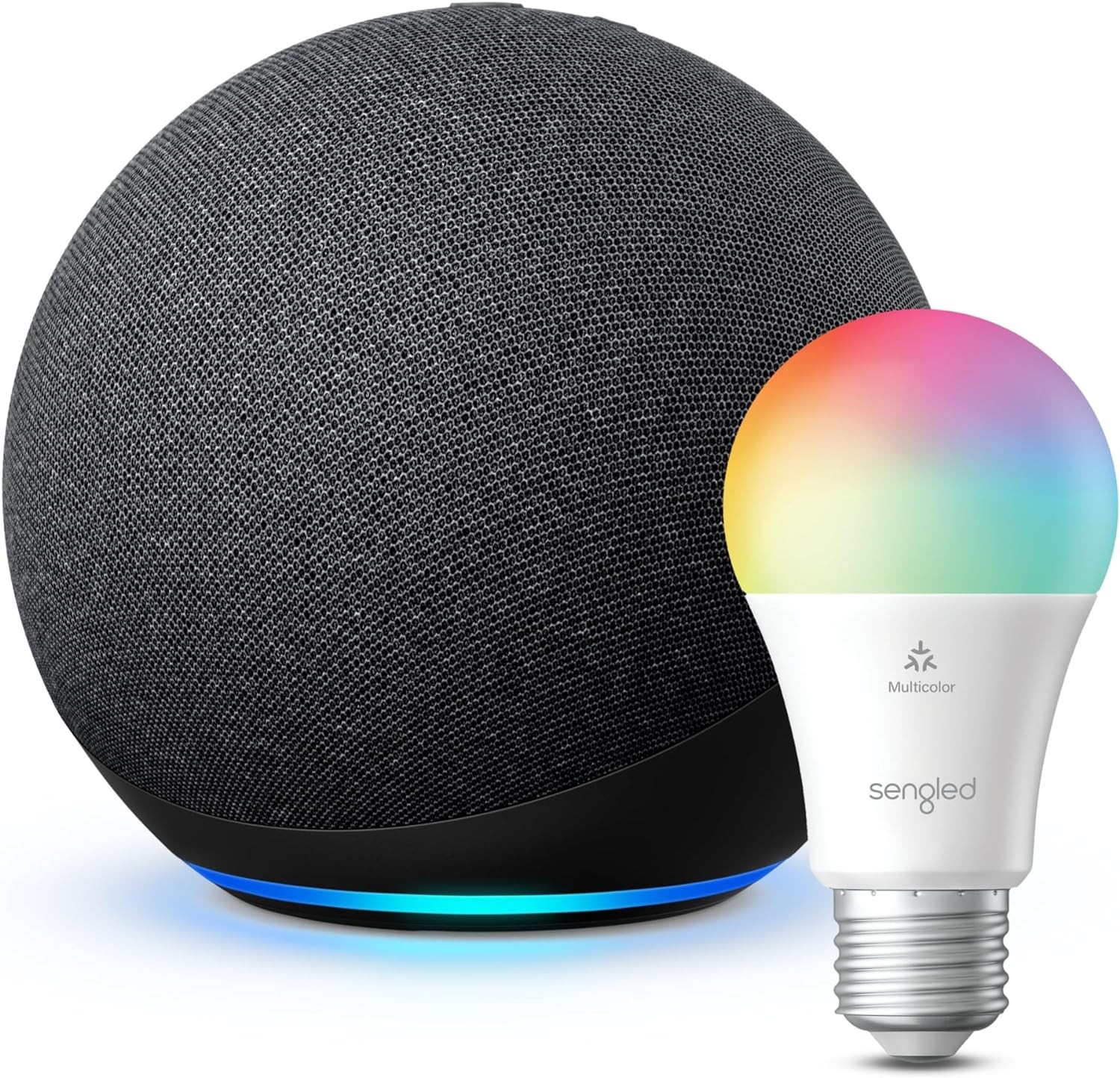 Echo (4th Gen)| Charcoal with Sengled Smart Color Bulb