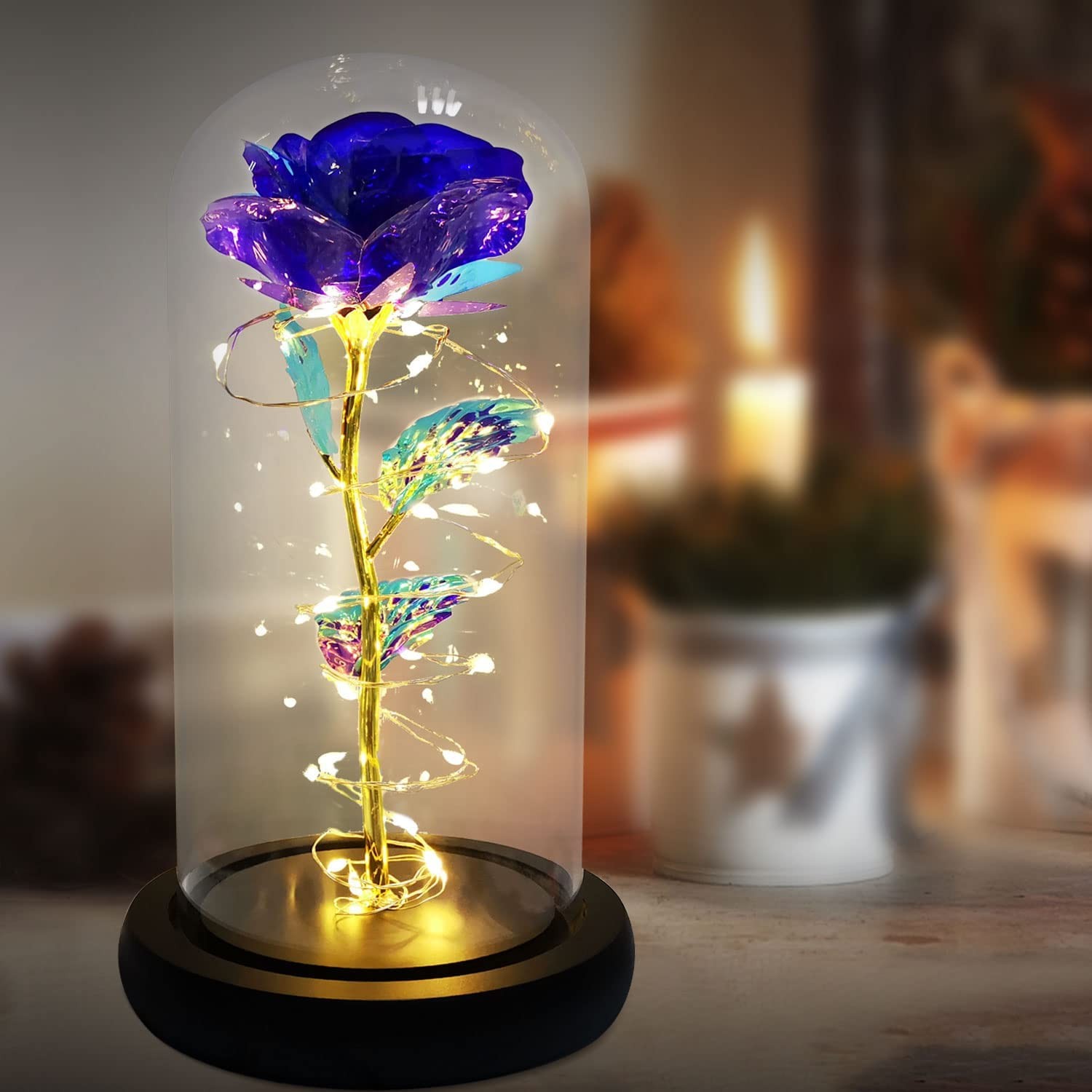 ?rose: Never Withered Roses have always been a symbol of beauty and love . This purple rose flower will never wither and die. The Eternal Rose Flower is perfect and impeccable. It is as full of infinite beauty and hope as a rainbow.And it will bring you infinite love and sweet. ?Charming & Romantics: Red rose, Charming and romantics! Not only as a symbol of appreciation, also is a symbol of best wishes. The Red Rose glass dome represents Faith in Love . It is a special way to telling her/him "Love you more as time goes by". ?Beautiful home decor: The tiny LED lights are embedded in the petals,from the rose to the petals falling on the base ,the warm white light illuminates the entire dome.LED string is made with a fine bendable copper wire that create any shape you want.Safety and light circle dome cover allows LED light to shine more briliantly than glass cover,resists yellowing & discoloration,and is easier to clean! ?Perfect gift: This is a well-made, full of meaning gift, it can be stored for a long time like new, Ideal Gift for Valentine's Day,Mothers Day,Anniversary,Wedding,Engagement,Birthday. The gentle rose is not only the best gift for girlfriend, wife's wedding anniversary, child's birthday,mother's birthday, or Mother's Day, Father's Day,Thanksgiving Day,Valentine's Day and Christmas,But also the high-quality led family home gift for anniversarie
