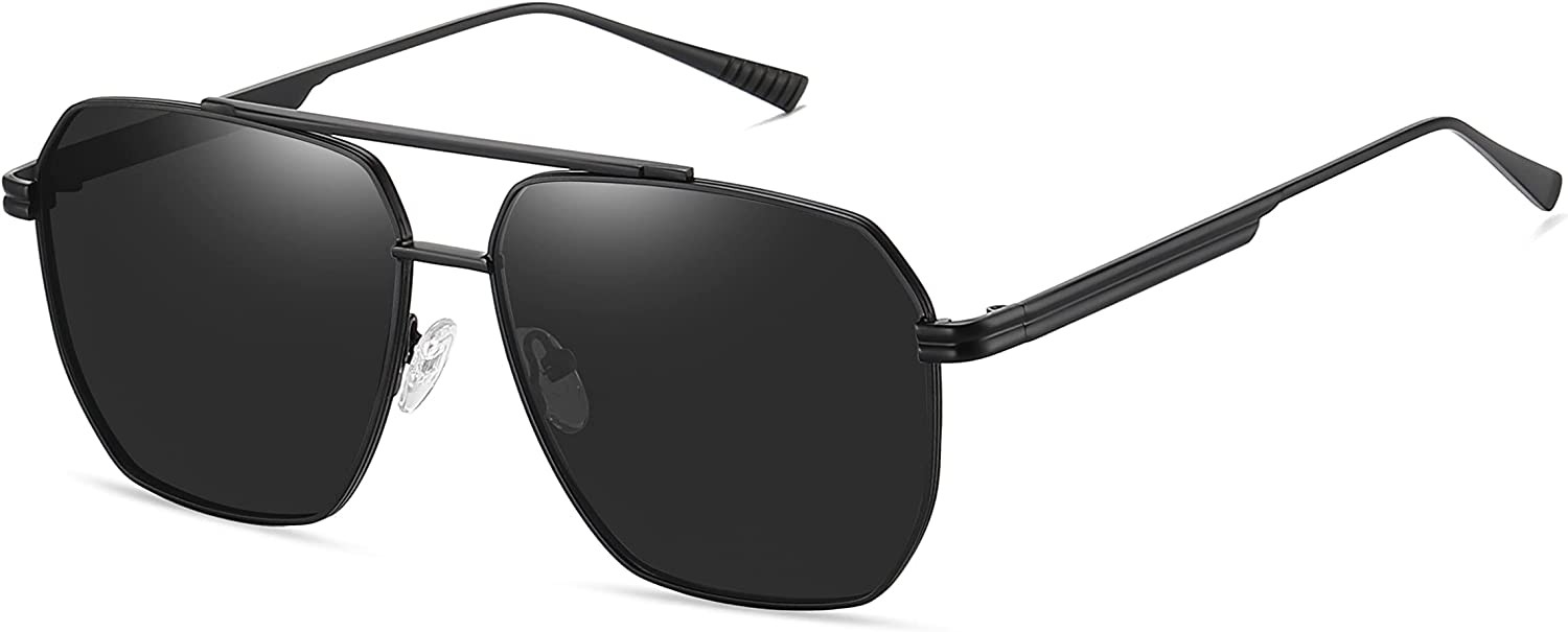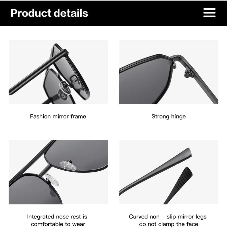 Imported Metal frame Tri Acetate Cellulose lens Scratch Resistant UV Protection Water Resistant coating Lens width: 2.32 inches Lens height: 2.09 inches Bridge: 0.71 inches Arm: 5.98 inches ★HD TAC POLARIZED LENS -The HD TAC polarized lens on these glasses is scratch resistant, waterproof, anti glare, and 100% UV protection, ensuring your eyes are well-protected. ★PREMIUM METAL MATERIAL - The frame is made of stainless steel material, which makes it flexible and lightweight, and also ensures that it is unbreakable. ★FASHION CLASSIC DESIGN - This stylish aviator frame is durable and features non-slip, skin-friendly nose pads. It is suitable for any face shape and is perfect for everyday outdoor wear, as well as outdoor sports like fishing, driving, cycling, golf, hiking, and Running ★PRODUCT SIZE - 53mm (2.09 inch)| Lens Width:59mm (2.32 inch) | Nose Bridge: 18mm (0.71 inch) | Temple Length: 152mm (5.98 inch) | Frame Width: 147mm (5.79 inch) ★WORRY-FREE SHOPPING - If you're not satisfied with your purchase, you can get a full refund within 30 days. Plus, we offer a lifetime warranty on all our products.