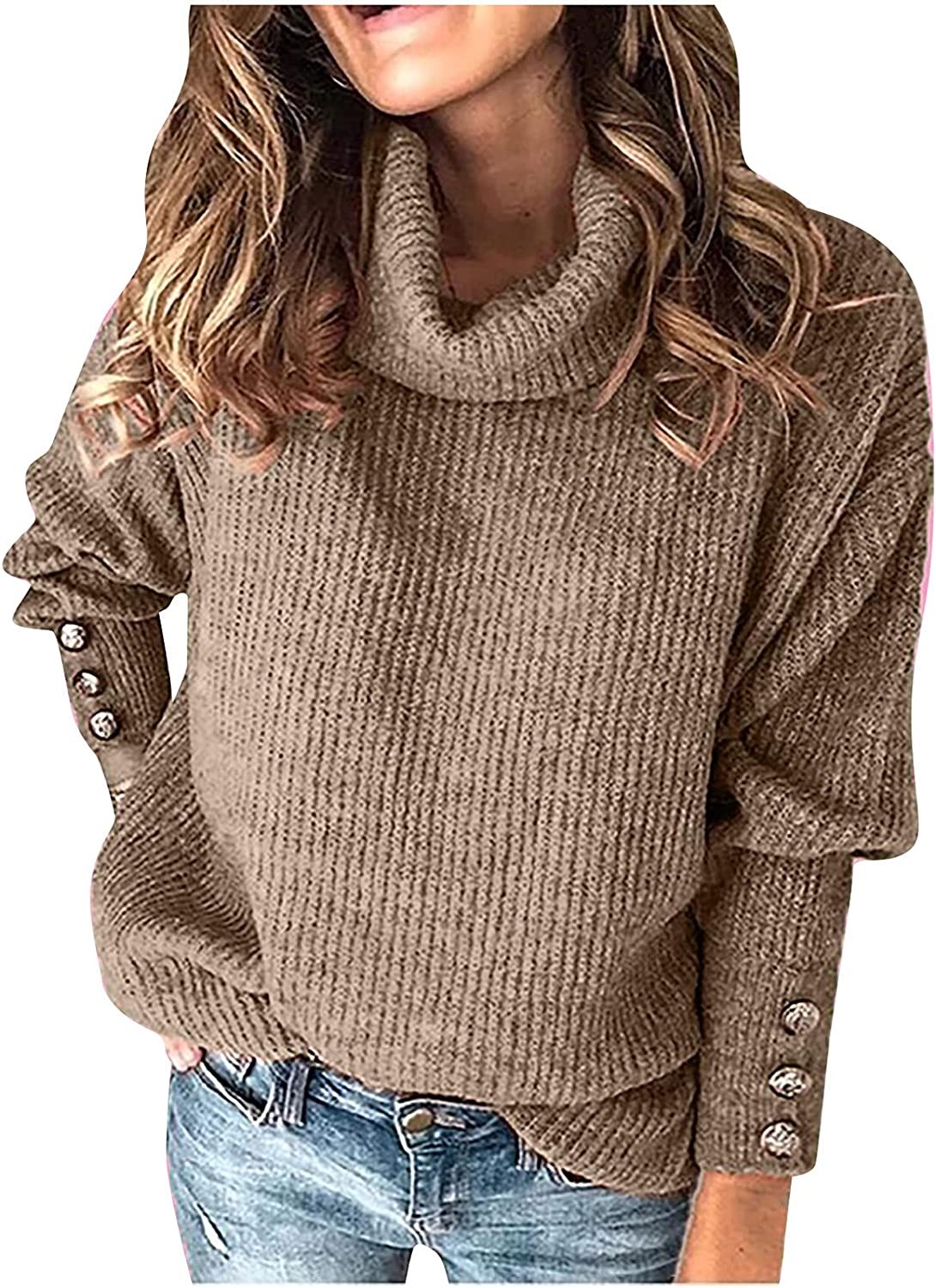 ?Women's Turtleneck Oversized Sweaters -【Features】: Oversized sweaters for women, pullover sweaters, Balloon Sleeves,chunky sweater, turtleneck sweater, cowl neck sweaters, winter sweaters for women, long sleeve, button cuff detail, high neck design, solid color, casual outdoor warm sweater.