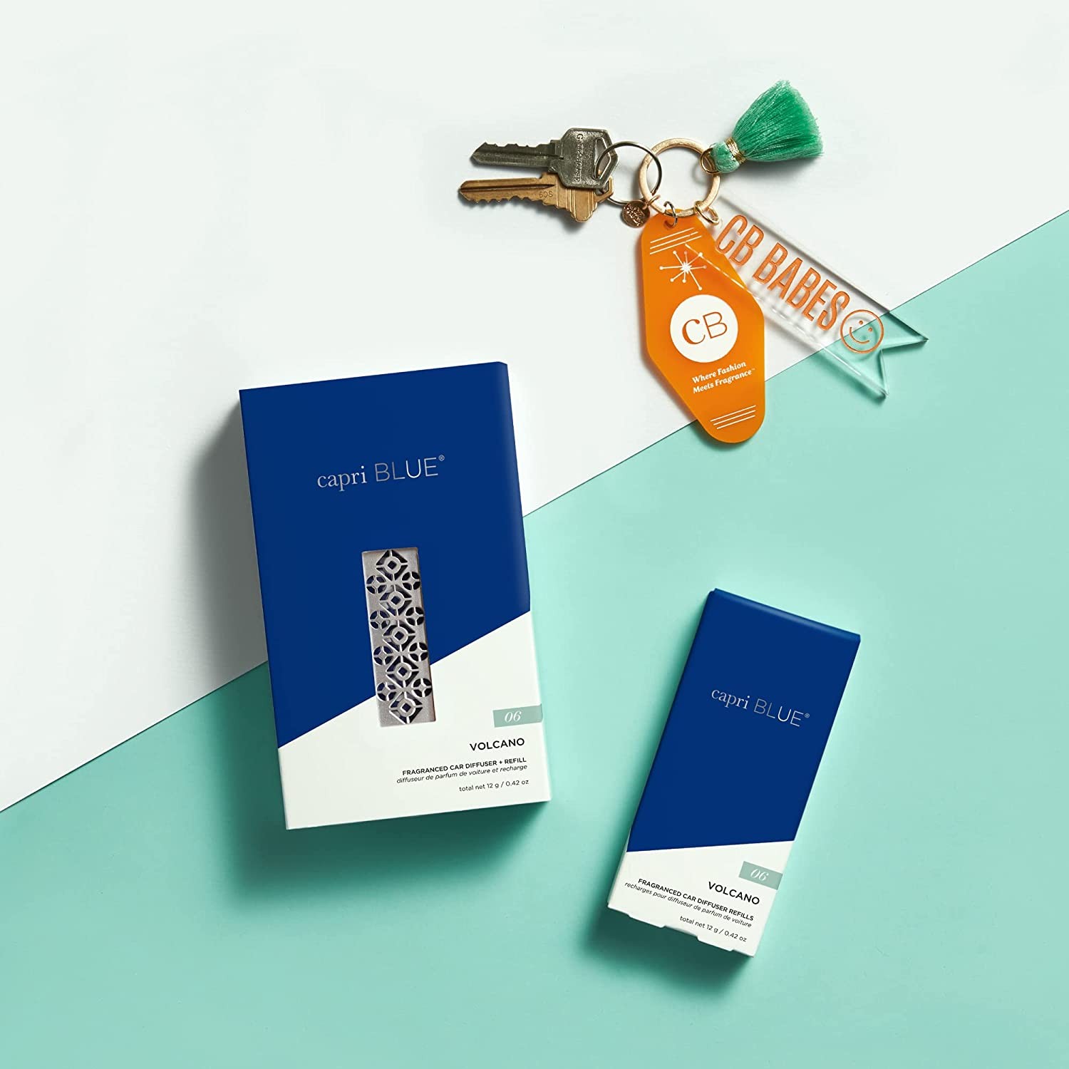 Volcano Car Air Freshener: Take your favorite Volcano Capri Blue fragrance with you everywhere you go with our car scent diffuser kit! From your daily commute to your weekend adventures, our Capri Blue car fresheners are car essentials for the ultimate fragrance experience. This diffuser set includes one car diffuser vent clip and four fragranced reeds. An Iconic Aroma: Drift away with the classic notes of tropical fruit and sugared citrus of our Volcano car scents air freshener. Like the excitement and energy of a summer night rendezvous, these diffuser scents are simply unforgettable. Long-Lasting Fragrance: To create the ideal car aroma ambiance, use two Capri Blue car freshener reeds in the car vent clip air freshener. Car perfume reeds will last up to 30 days. These reeds are intended for use in the Capri Blue car vent air freshener only. Do not place the fragranced reeds on the dash, cupholder, or other areas of the vehicle as damage may occur. Easy to Use: 1. Simply slide the front plate off the backing of the car air diffuser. 2. Remove two fragranced reeds from resealable bag and place in clip of diffuser for car. Reseal bag tightly for future use. 3. Return front plate to backing and attach it to a vent in your car, sit back, and enjoy! About Us: Inspired by contemporary fashion trends, Capri Blue creates exciting new products for every season. Also available in our Volcano fragrance diffuser collection are home reed diffusers and smart home fragrance diffusers to fill any space with your favorite Volcano aroma!