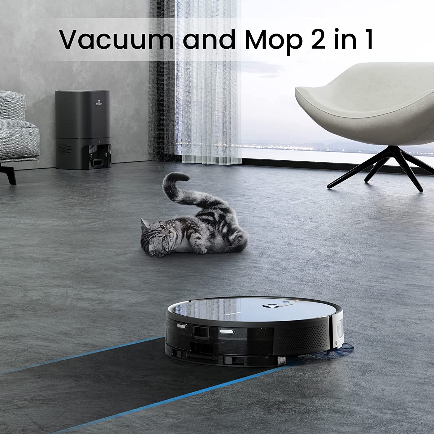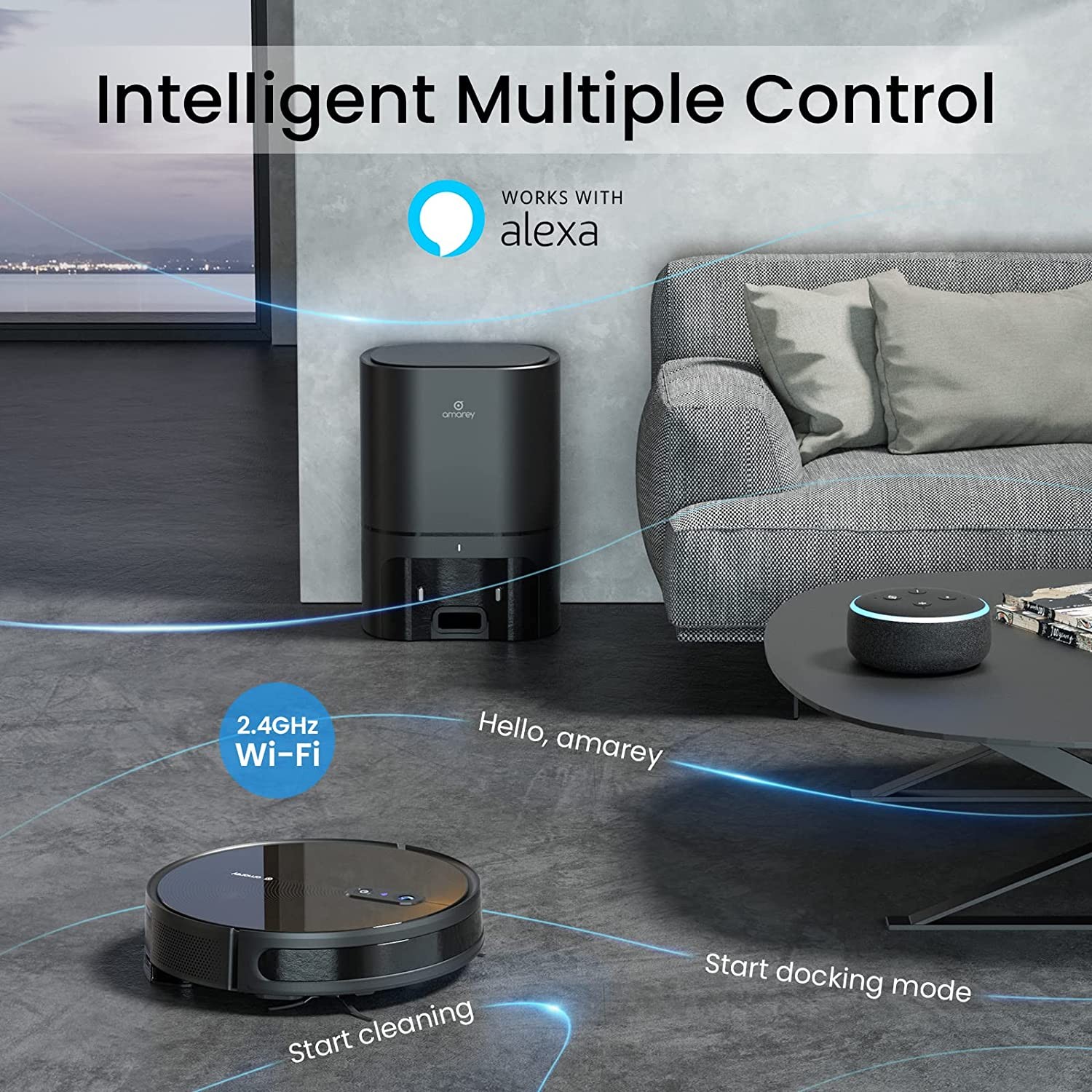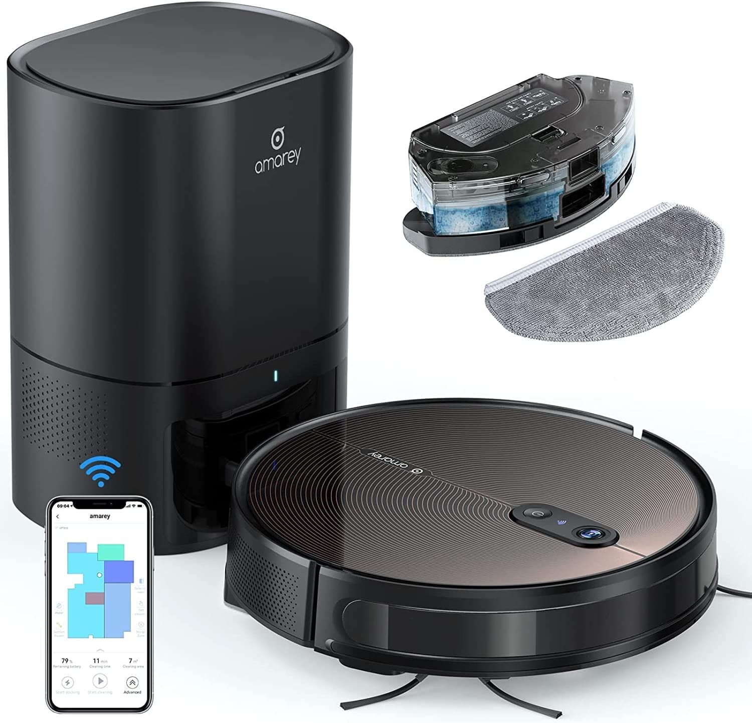 Less Work, More Convenience: Amarey A90+ robot vacuum self emptying is equipped with a 2 in 1 auto-empty dock and charging base, a large 3L dust bag holds up to 45 days of dust and debris, reducing the frequency of manual bin-emptying. Use the no-touch, hygienic clean station to automatically empty the dustbin, combined with a comprehensive 5-Layer filtration system that captures up to 99.99% of particles and prevent dust from being released back into your home. Intelligent Mopping Cleaning System: Amarey robot vacuum and mop combo adopts 300mL water tank, which is large enough to complete at least two passes over the 500-square-foot test floor. With the app, you can choose water-flow levels to reach a balance of moistness and quick drying, and two mopping patterns. The deep scrubbing option provides a thorough cleaning, and the quick scrubbing is for routine mopping. Visual Navigation Design: Amarey A90+ robotic vacuum cleaner intelligently avoids objects using visual navigation and adjust cleaning performance on multiple surfaces for an optimized clean. It’s equipped with navigators that find debris you’d never catch on your own, without getting stuck on typical household clutter. It’s thinner than most bots, which lets it glide under more furniture, picking up plenty of hidden debris. Smart Mapping and Voice Control: Amarey A90+ vacuum robot can be customized through the Amarey App, quickly view movement on a map of your home from wherever you are and see where it has cleaned and setting cleaning area and No-Go Zone. It’s also compatible with Alexa and Siri. Start cleaning even when your hands are full. Do Not support 5 GHz Wi-Fi. What you can get: 1x Amarey A90+ robot mop and vacuum, 1x Self-emptying base, 1x Rolling brush, 4x Side brush, 1x Efficient filter, 1x 2-1 Dust and water tank, 1x Dust bag, 1x Mopping module, 1x User guide and 24 Months worry-free warranty.