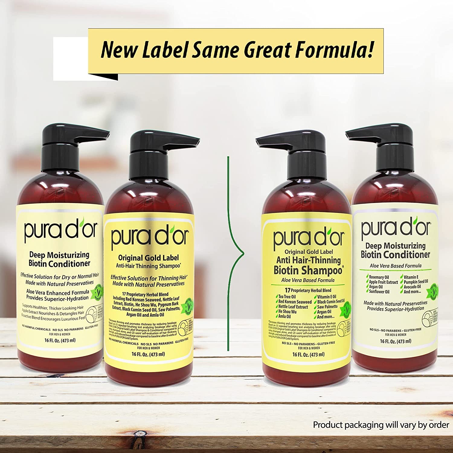PURA D'OR Anti-Thinning Biotin Shampoo and Conditioner, CLINICALLY TESTED Proven Results, DHT Blocker Thickening Products For Women & Men, Color Treated Hair, Original Gold Label Hair Care Set 16oz x2