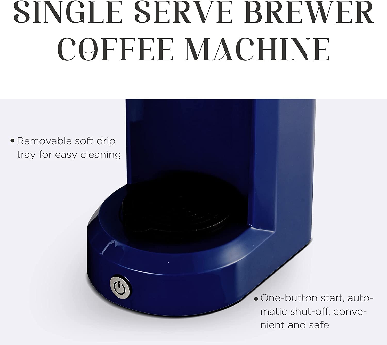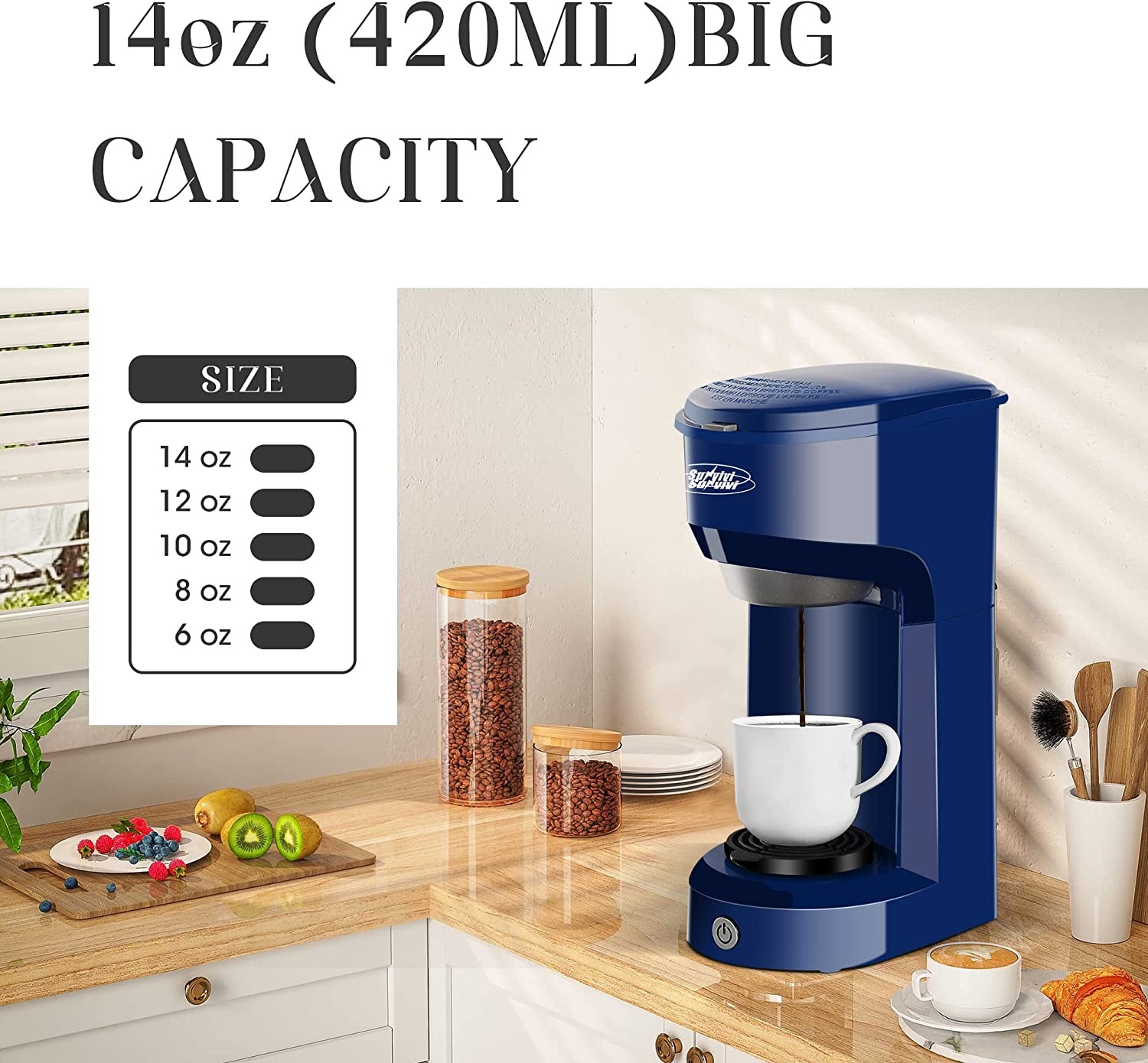 Coffee Maker, Single Serve Brewer for Single Cup, One Cup Coffee Maker With Permanent Filter, 6oz to 14oz Mug, One-touch Control Button with Illumination, Blue (ETL Certified)