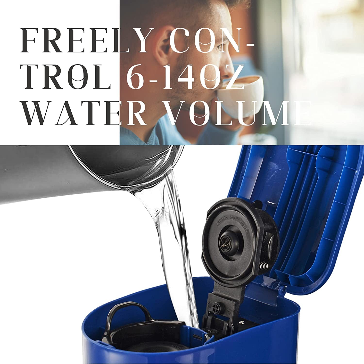 2 IN 1 BREWER TYPES: Looking forward to the fusion of Single cups and ground coffee. This single serve coffee machine displays measurements from 6 oz to 14 oz in the reservoir, allowing you to control the amount of coffee brewed as needed to save valuable ground. BREW HOT COFFEE IN 3MINS: Want to drink delicious and hot coffee within three minutes? Just simply add water to the measurable water tank, insert a Single cup or pour into some ground coffee, then click on the corresponding button to brew your hot coffee. SAVE YOUR SPACE: Size-6.6" W x 5.4"D x 10.9" H, Net Weight-2.3 LBS. This coffee machine saves counter space, which is very suitable for small places, like room, office, RV, hotel, apartment. You can conveniently carry in your every trip. 1-BUTTON CONTROL& AUTO SHUT-OFF FUNCTION: Simple one-touch button makes it easy to brew your favorite coffee. Preparing ground coffee or single-cup capsules/pods, add water, press button, then auto shut-off after brewing, which ensures safety. Powerful 1000W fast brew technology ensures coffee brews quickly and at the perfect temperature just in a matter of minutes. WARM TIP: When using for the first time, please clean the coffee maker about 5 minutes. Clean once every 2 months and use a brush to prevent the coffee grounds from clogging.