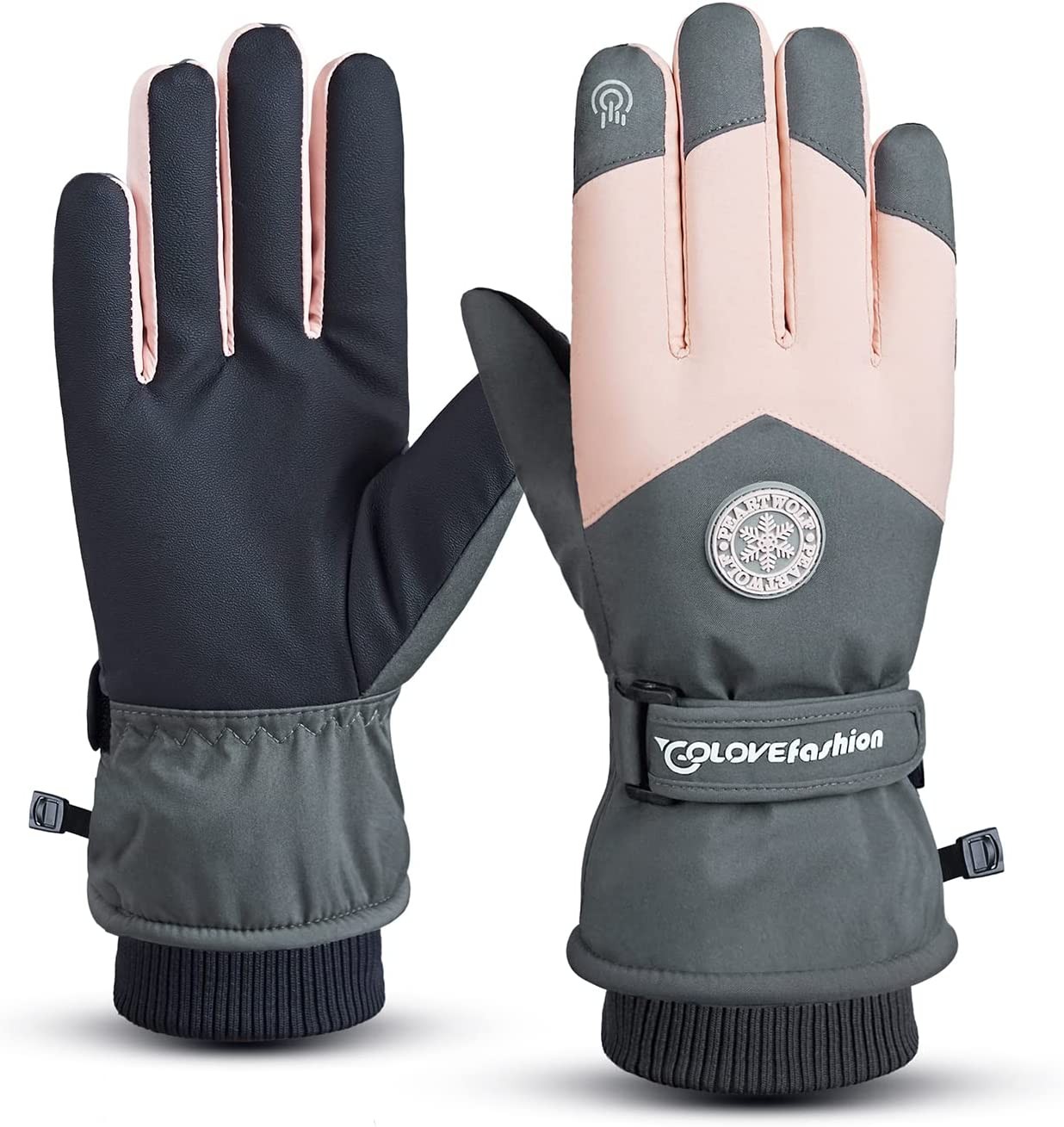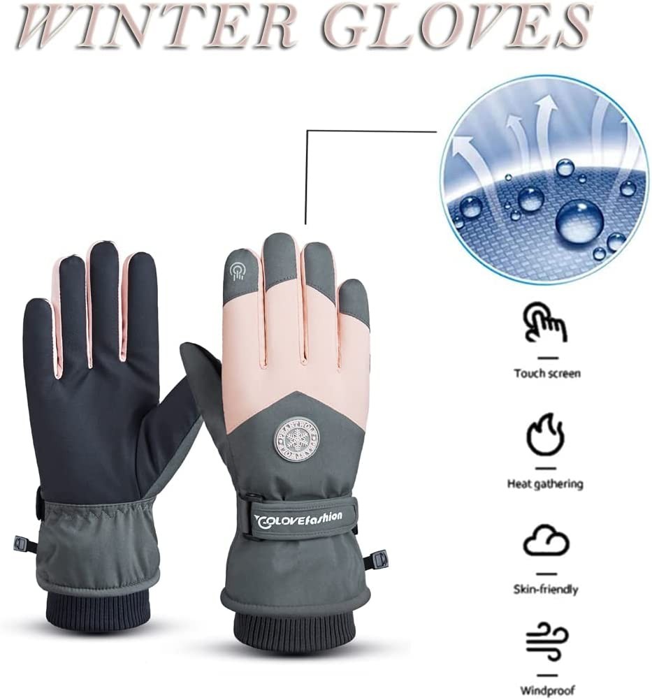 Wind proof and waterproof: The winter warm gloves are made of high-density fabrics, which have good waterproof performance and can keep hands dry and warm in rain and snow. Elastic knit cuffs also protect against cold wind. Warm and antiskid: The inside of ski gloves in winter is made of thickened arctic velvet, with three layers of warm structure, which is warm and comfortable, with good permeability, and keeps hands warm and sweat free. The palm and fingers of the gloves are made of silicone anti-skid materials, which can improve the grip of the hands, and are wear-resistant and durable. Touch screen: The fingers of each glove are coated with conductive PU material, so you can answer the phone and play with the mobile phone without taking off the gloves or freezing your hands. The touch screen has high sensitivity and smooth operation. Hook and loop closure: adjustable sticky buckle design, which can easily adjust the tightness to fit the wrist, making it stable and fixed. The fixing clasp between the wrists of the two gloves can be conveniently hung in the backpack or the carrying gloves to prevent the gloves from being lost. Size: Men's snow gloves Suitable for palm width: 8-10cm/3.15-3.94 inches; Women's snow gloves are suitable for palm width: 7.5-8.5cm/2.95-3.35 inches.