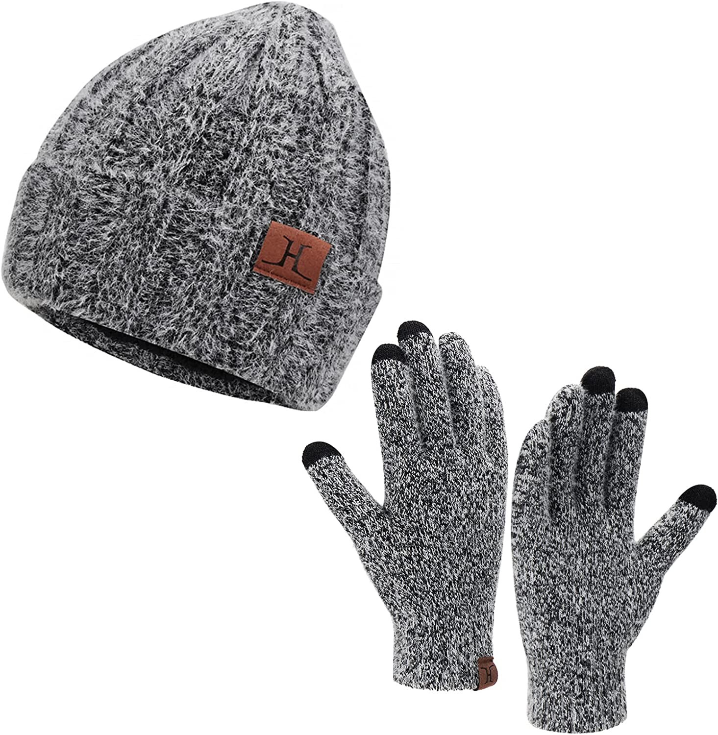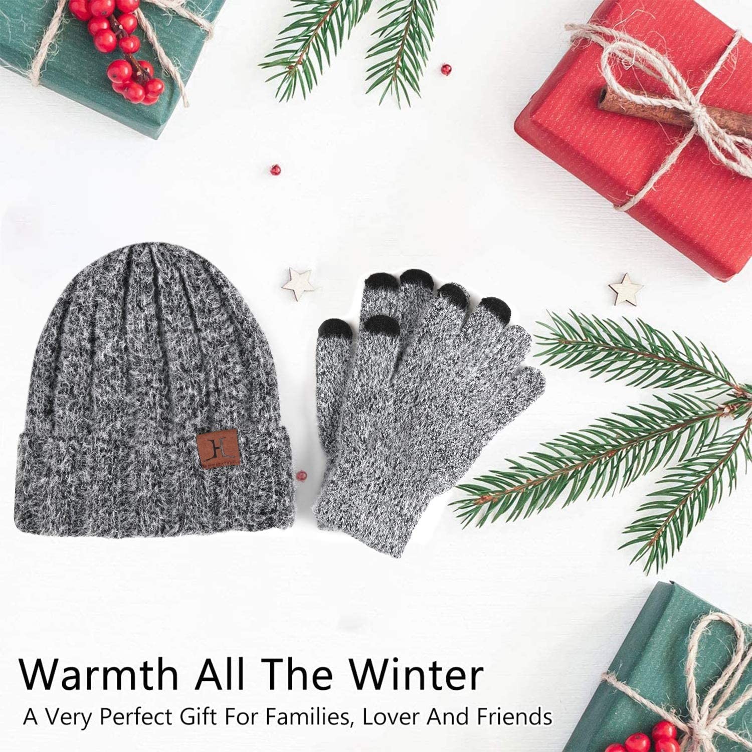 Acrylic, Wool & Polyester Pull On closure Hand Wash Only 【Slouchy Style Unisex Beanie Hat Scarf Gloves Suit】Excellent Acrylic & Polyester. One size fit various head shapes and hand sizes, and it's easy to wear or take off. They have enough elasticity and snug fitting to make you stretch freely and comfortable to wear. 【Warm Fleece Lined Beanie Hat】Double layer design, the outer layer design makes it breathable, durable and soft. The thick fleece lining gives you comfort and warmth without making you feel itchy at all. It can protect you even in the coldest winter. The cuffs of the hat can be rolled up and down to adjust and fit the head firmly. 【High Sensitive Touch Screen Gloves】Double layers touchscreen sensitive materials on 3 fingers (thumbs, forefinger and middle finger), enjoy using smartphone, tablet, texting, driving in extreme cold weather. Classic Style Knitted Hats Gloves Suits】Precise knitting crafts creates a beautiful and fashionable design that can be matched with most formal and casual clothing. Just buy the winter set as gifts for her on the Christmas day and her birthday. 【Fashion Winter Hats and Gloves Set】Wonderful for women wearing while skiing, skating, sledding, camping, driving or any outdoor winter sports and daily use. Package Included: 1× Winter Beanie Hat + 1× Touchscreen Gloves.