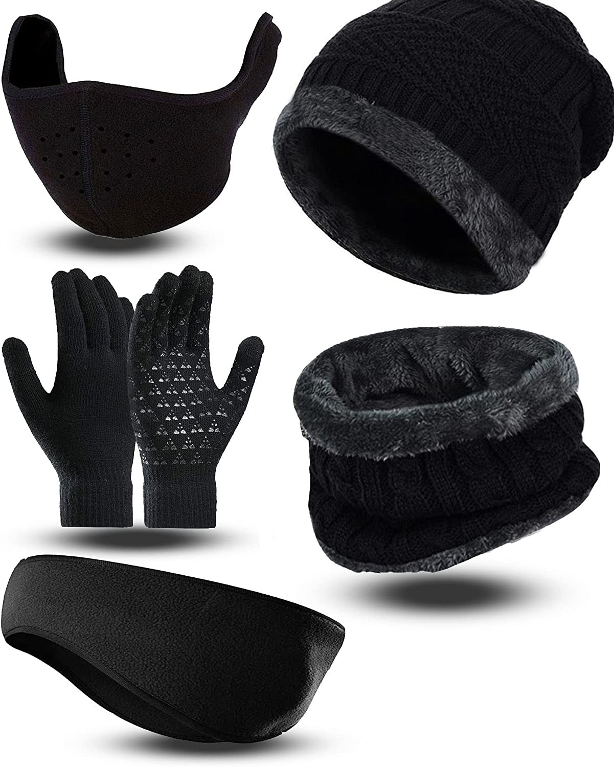 Polyester 进口 Pull-On closure Hand Wash Only Package include: 1 Pieces of Winter Beanie Hat ,1 Pieces of Winter Beanie Scarf,1 Pieces of Ear Warmer Headband,1 Pieces of Winter Face Mask,1 Pair of gloves Ear warmer :The headbands have an even width around, so they don’t cover your entire ear. Tough‘s premium fleece cold weather headbands widen at the ear to keep them extra warm. Winter hat and scarf:Made of thicker and cozy acrylic knit, with soft fleecy lining, super comfortable and warm.Soft fleece lining, has better heat retention, enjoy the maximum warmth. Fleece Winter Face Warmer :Half balaclava style face mask with ear flap, protect your mouth, nose, ear from cold wind and dust. mall holes in front of mouth and nose allows you breath freely, and velcro fastener at two sides help you to adjust the face mask to the ideal size you need. Knitted gloves:Delicate sewing thread, provide the added durability.Unisex, stretchy and elastic, One Size fits most men and women