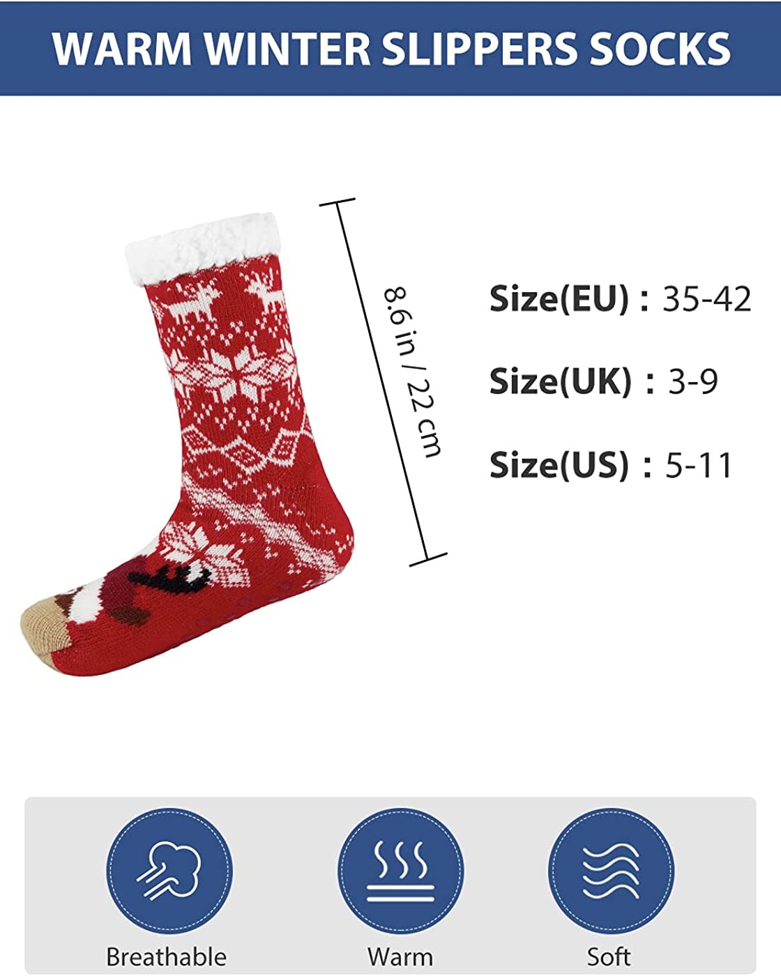 High Quality Material:The outer of the slippers socks is made of soft material,which would not fade easily.Lining with the high quality double layer fleece,the warmyard slipper socks is fluffy,soft and resistant to wear.It is cozy,breathable and would not make your feet feel stuffy.You can wear it when watching TV on the couch or chatting with family members in winter. Non-slip design:The non skid grips totes slipper socks has silicone spots,protecting you from slipping and falling when wearing it doing yoga,cleaning house and playing with kids. Adjustable and suitable size:The length of the thick fleece socks slipper is adjustable,you can adjust it accord to the need.The socks is also elastic,fitting size 5,6,7,8,9,10,11,thus it is suitable for most people. Gift idea:The fleece lined slipper socks is stylish,you can send it to your family members and friends as a birthday or holiday gift. Machine washable:You can wash the fluffy slipper socks girls by laundry machine (hand wash and hang to dry is recommended).Please do not bleach,tumble dry and iron.