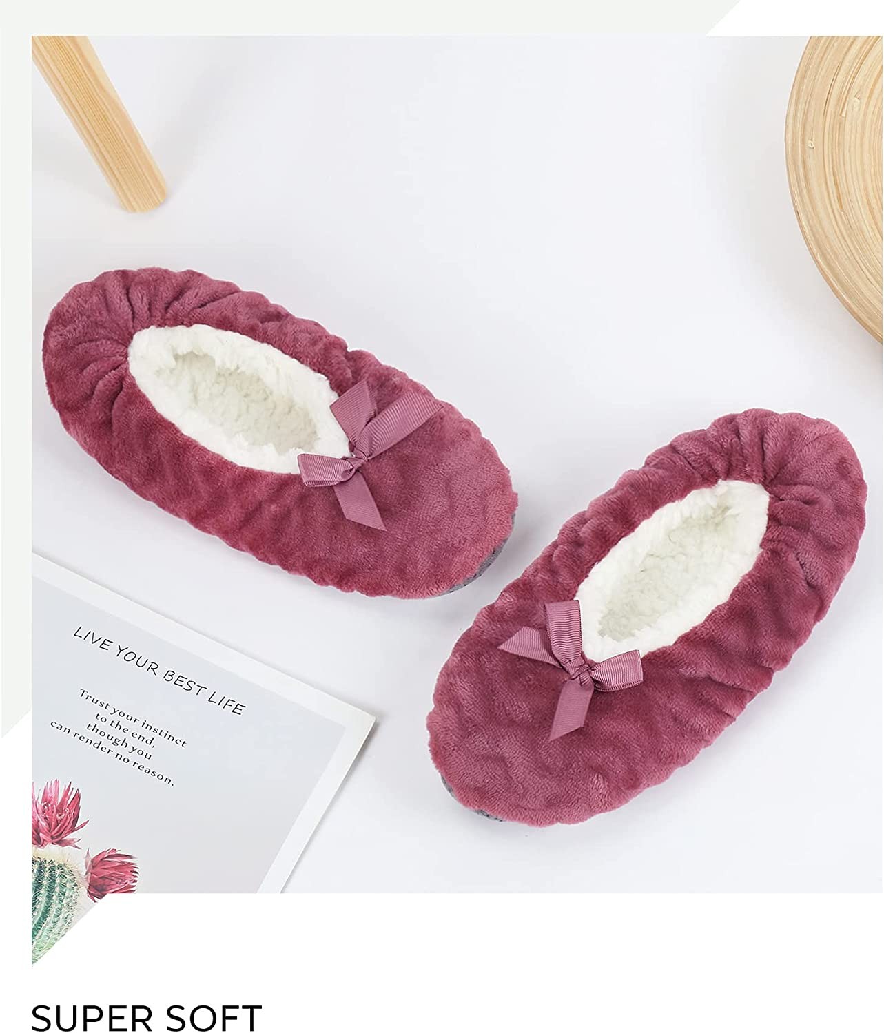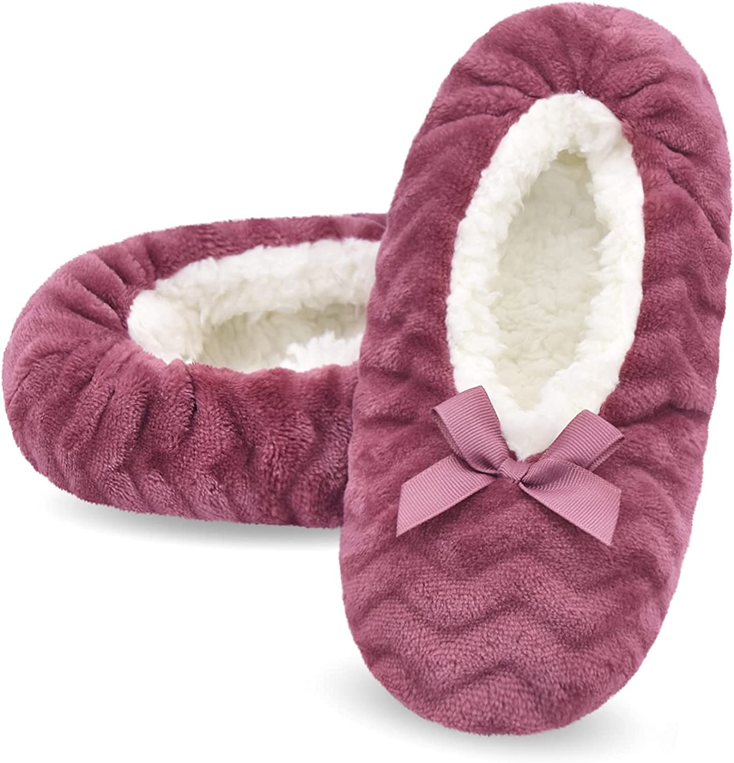 【COMFORTABLE】Designed to be a cross between a sock and a slipper for added warmth and comfort.Unique cute pattern design makes slippers look fashionable and lovely .The slipper socks is made up of breathable polyester fabric and comfy fuzzy lining ,keep your feet warm but don't make your feet hot.The seams of the slipper socks adopt double stitched design, so that the vamp and sole are not easy to fall off. 【ANTI-SKID】A foam-padded sole on the thick and soft bottom,keeping your feet insulated from cold floors and reduce the noise when you walk on the floor.Silicone grip dots on each sole give your feet extra traction on the floor. Durable soles allow slipper to last longer. 【MULTI-USE】Lightweight and packable slippers is a good travel companion. After a long day of work,you can enjoy amazing comfort of these house slippers.These soft and comfortable are also a good choice if the feet are swollen or painful. 【BEST GIFT】Perfect to be a Birthday/Christmas/Halloween gift to your family members,colleagues,and friends. Ideal for bedroom, home, dorm room or office. 【SIZE &CARE INSTRUCTION】Dear customer,our size is True to US size.Machine washable on cold or hand wash, gentle dry (do not tumble dry) and do not iron.We are so confident that you will love our cozy fuzzy slippers.If you're not 100% satisfied, please send them back for a full refund. Select your favorite color and ""Add to Cart"" now