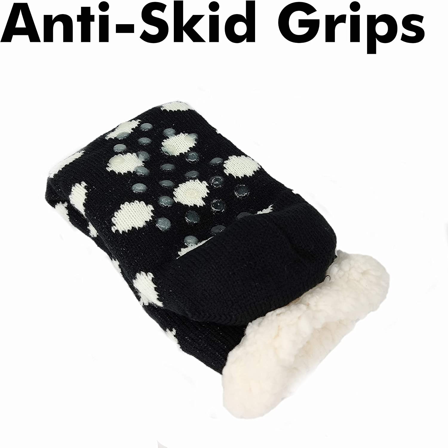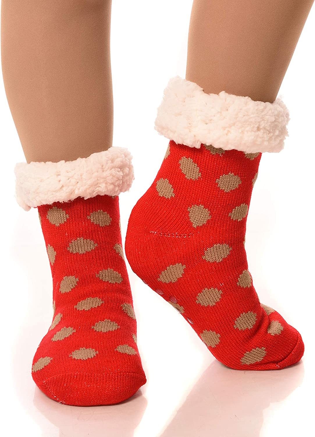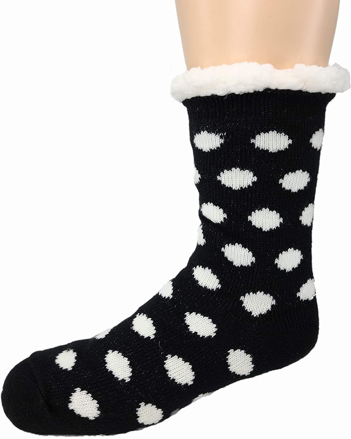 WARM AND PLUSH: These cozy women's winter socks are thick, warm, and comfortable. Lined with a plush thermal interior these socks will keep you warm and well protected against the extreme cold weather. The fleece lined socks for women can also be used as leg warmers under your boots. NON-SLIP GRIP: Designed with you in mind, these womens winter socks feature an anti-slip grip bottom to keep you safe. These womens warm socks will stick to your shoes or boots to provide ultimate warmth and comfort. It will also keep you safe and prevent slips and falls in house. INDOOR AND OUTDOOR USE: Our womens slipper socks with grips are perfect to use on your favorite outdoor activity like hiking, hunting, skiing, running, or cycling. The warm fluffy socks are great for sleeping socks on a cold winter day and for padding around the house. CHRISTMAS GIFT: Choose from the many colors and patterns available to gift your loved one. A merry Christmas, a happy birthday, or just because, this cozy patterned plush sock for women will surely warm their hearts. SATISFACTION GUARANTEE: Your satisfaction is our commitment. If our thick lined non skid socks do not meet your expectations contact us directly and we will help you get what you need.