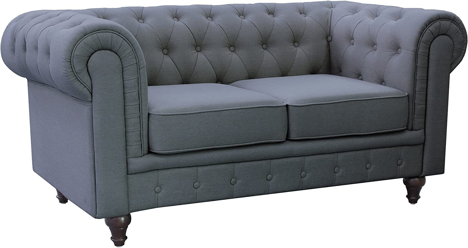 US Pride Furniture Linen Fabric Chesterfield Sofa Set, Grey