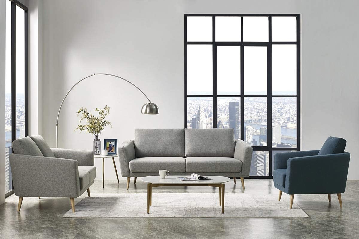 Limari Home Aurili Collection Modern Style Living Room Polyester Fabric Upholstered Loveseat With Wood Legs, Gray